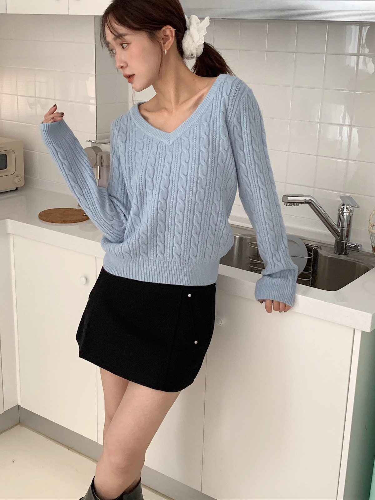 現貨+預購_V領麻花針織上衣