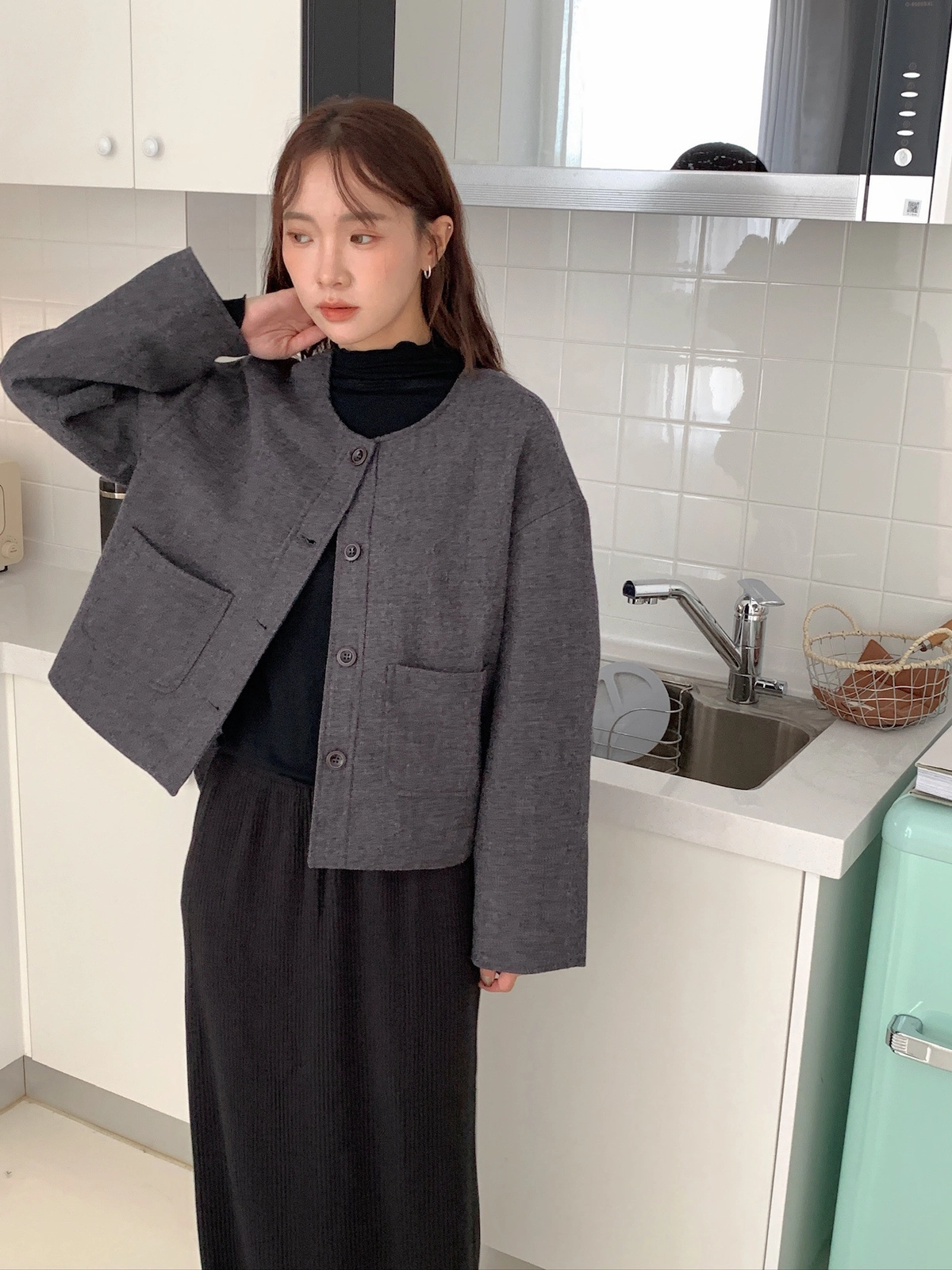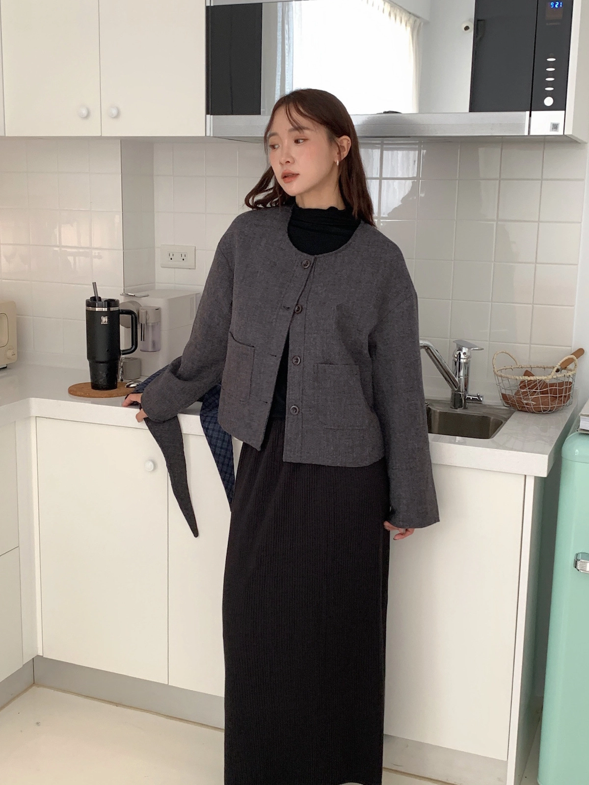 現貨_特價_厚實感毛呢排釦外套