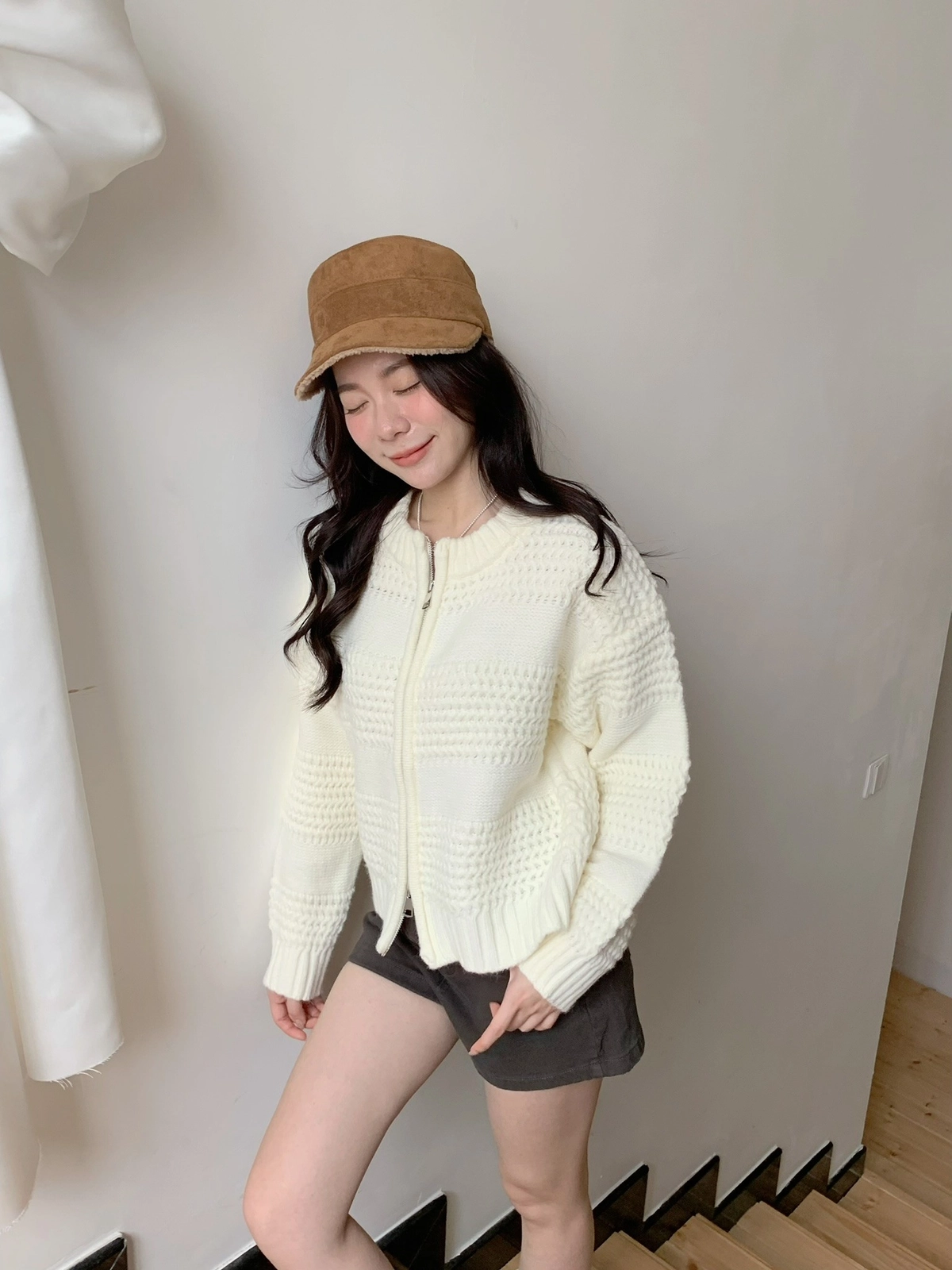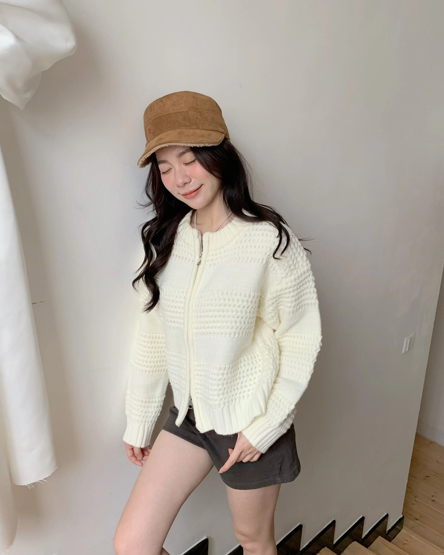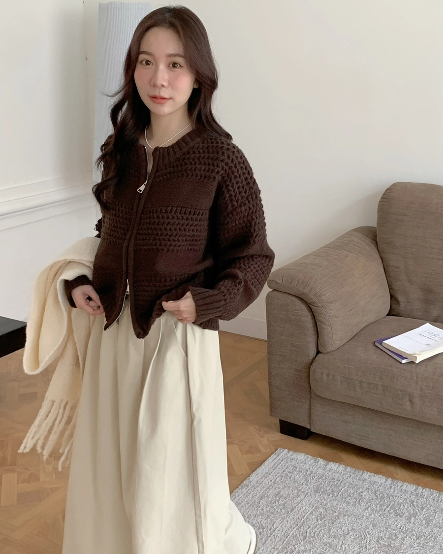 預購_寬鬆雙拉鏈厚針織毛衣
