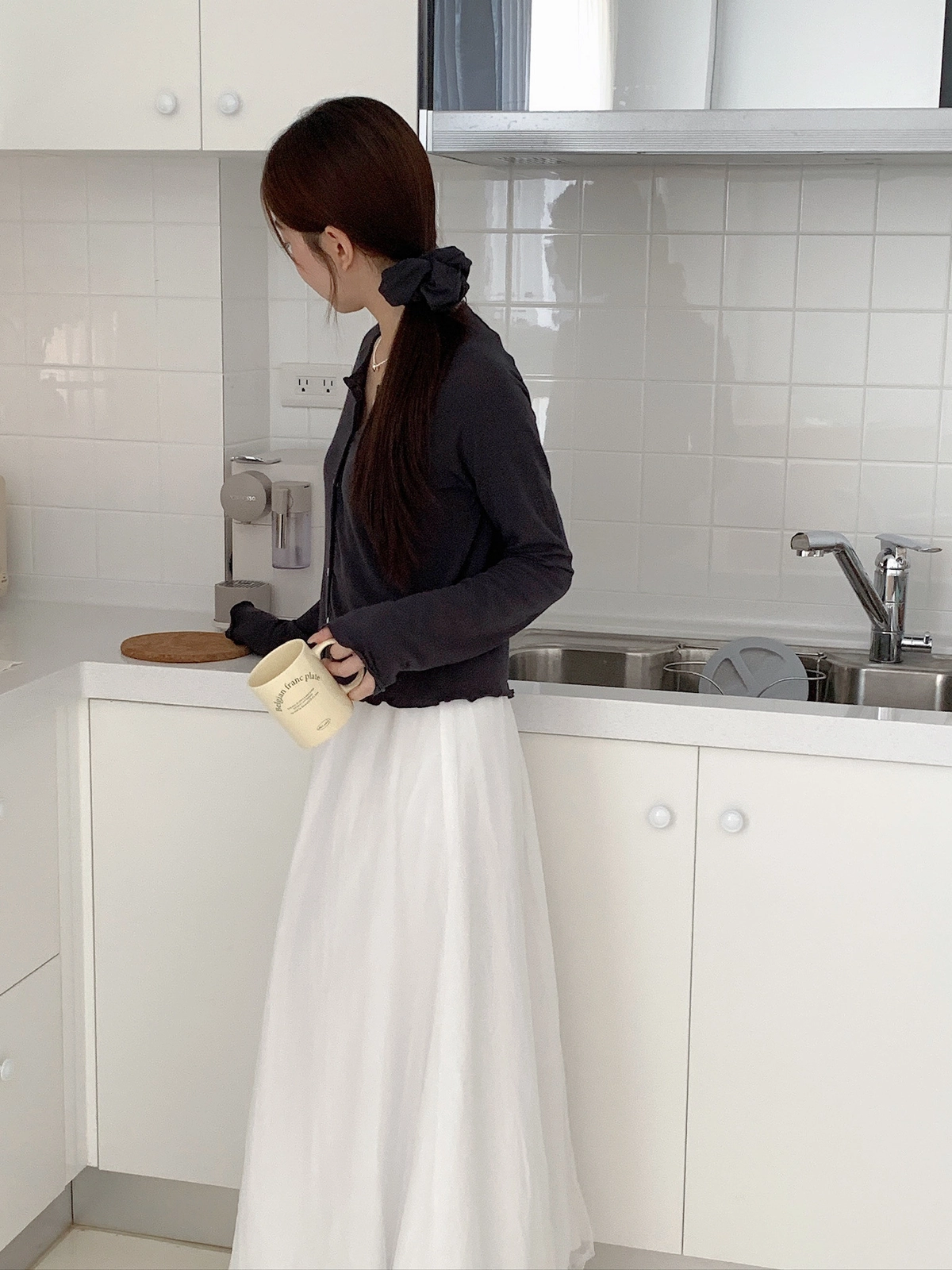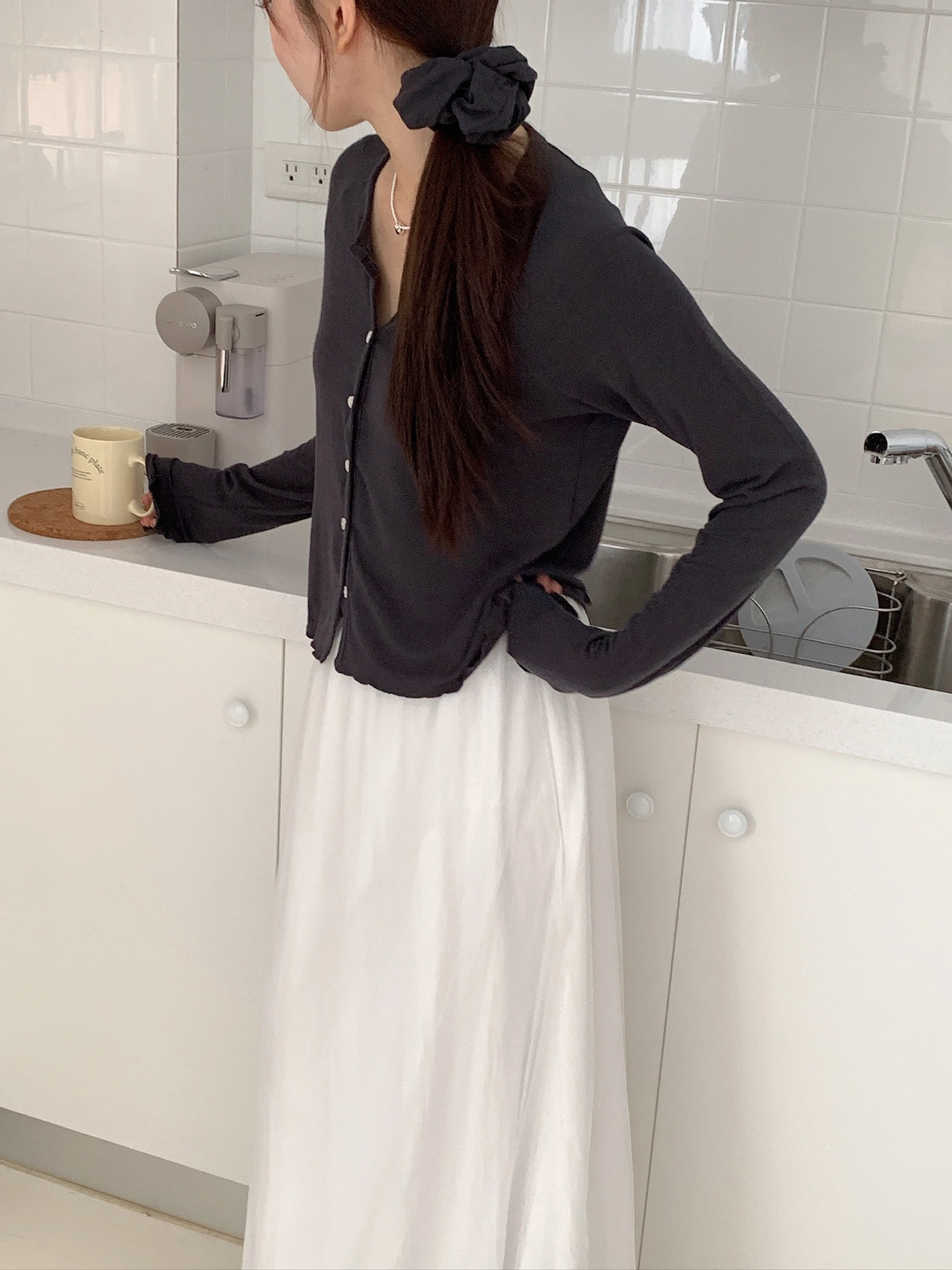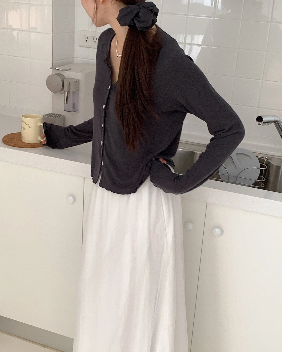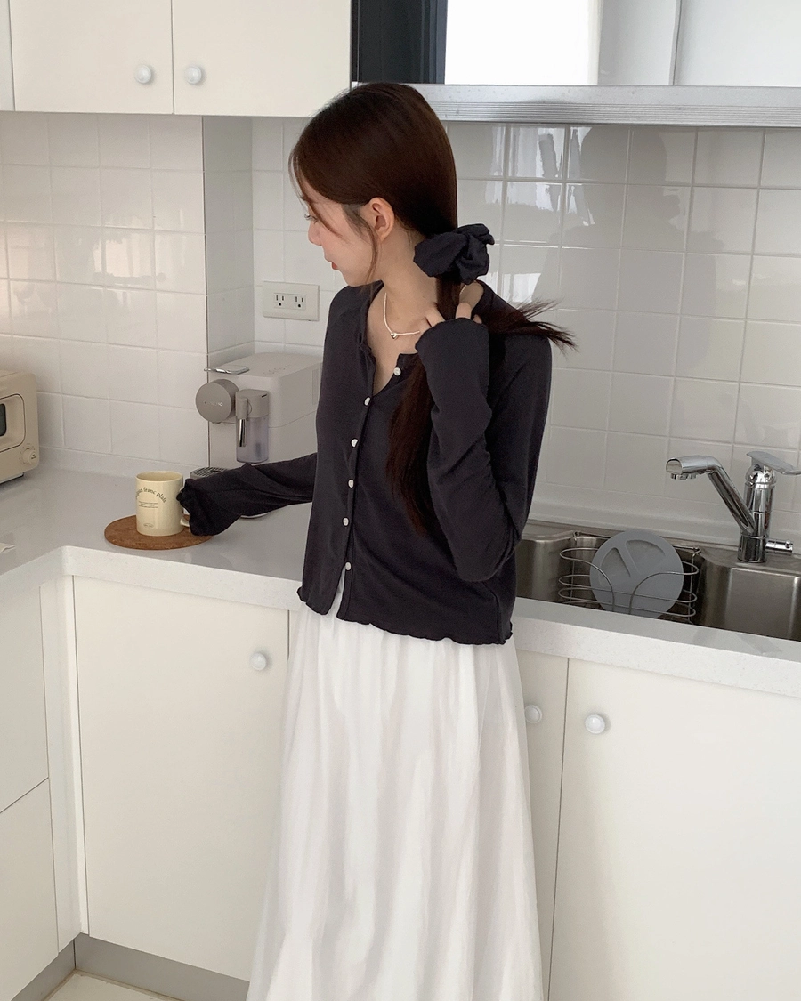 現貨_特價_小捲邊排釦親膚棉質上衣(附髮圈)