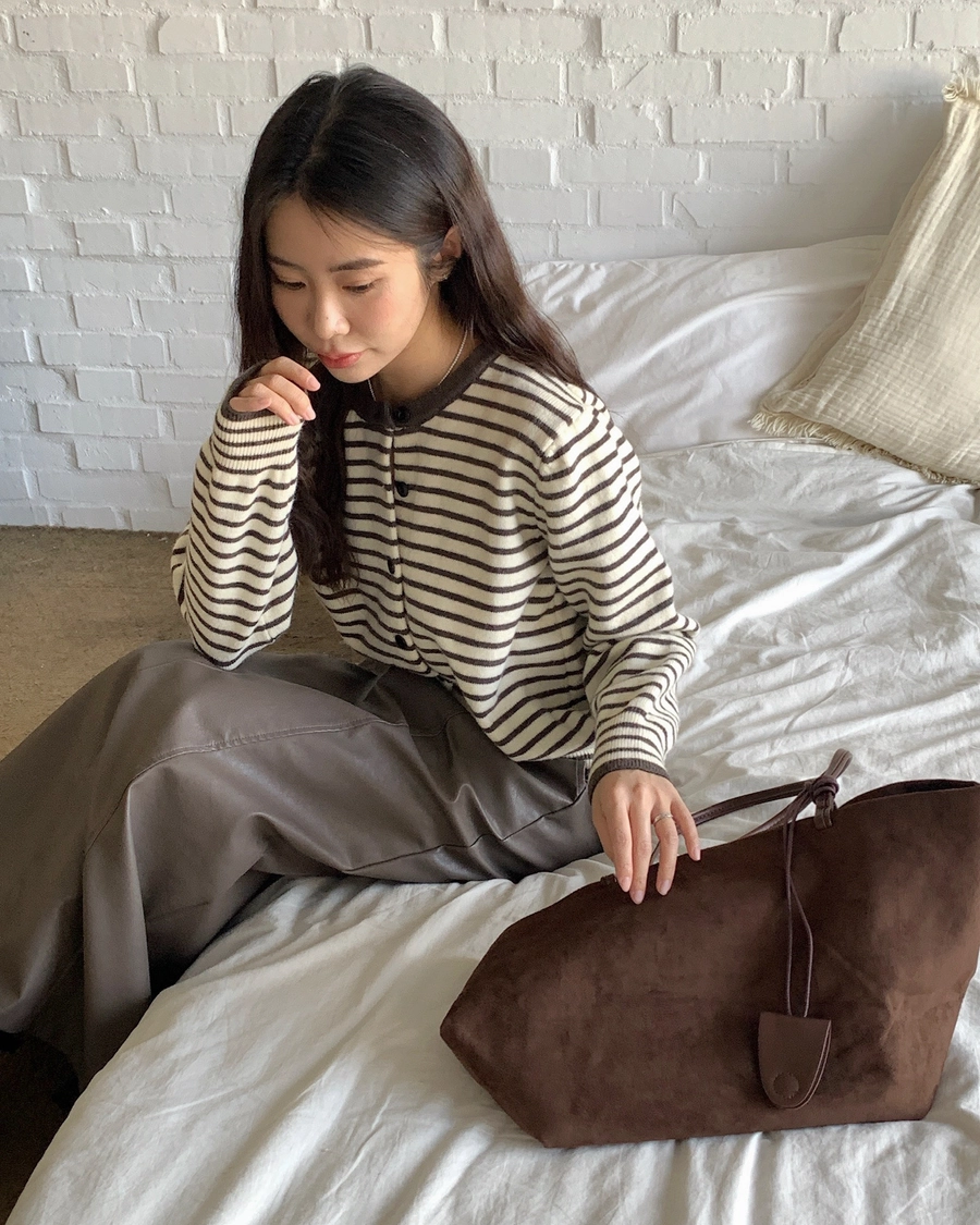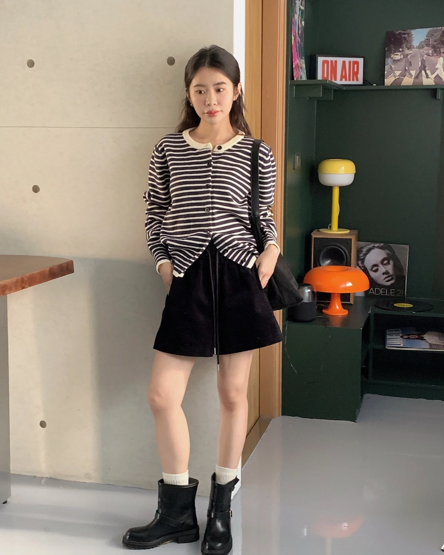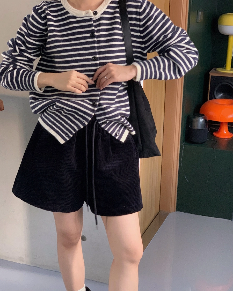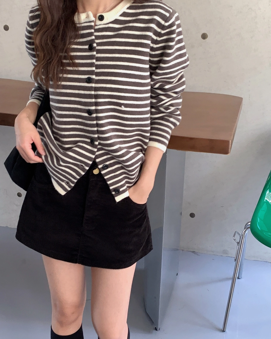 預購_橫條紋滾邊排釦針織衫