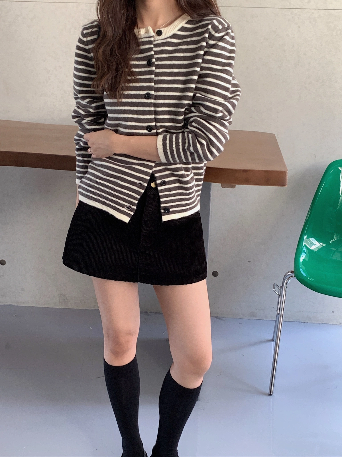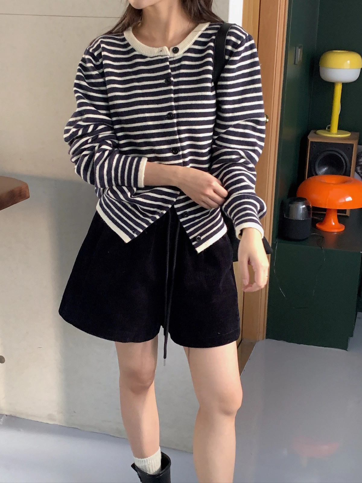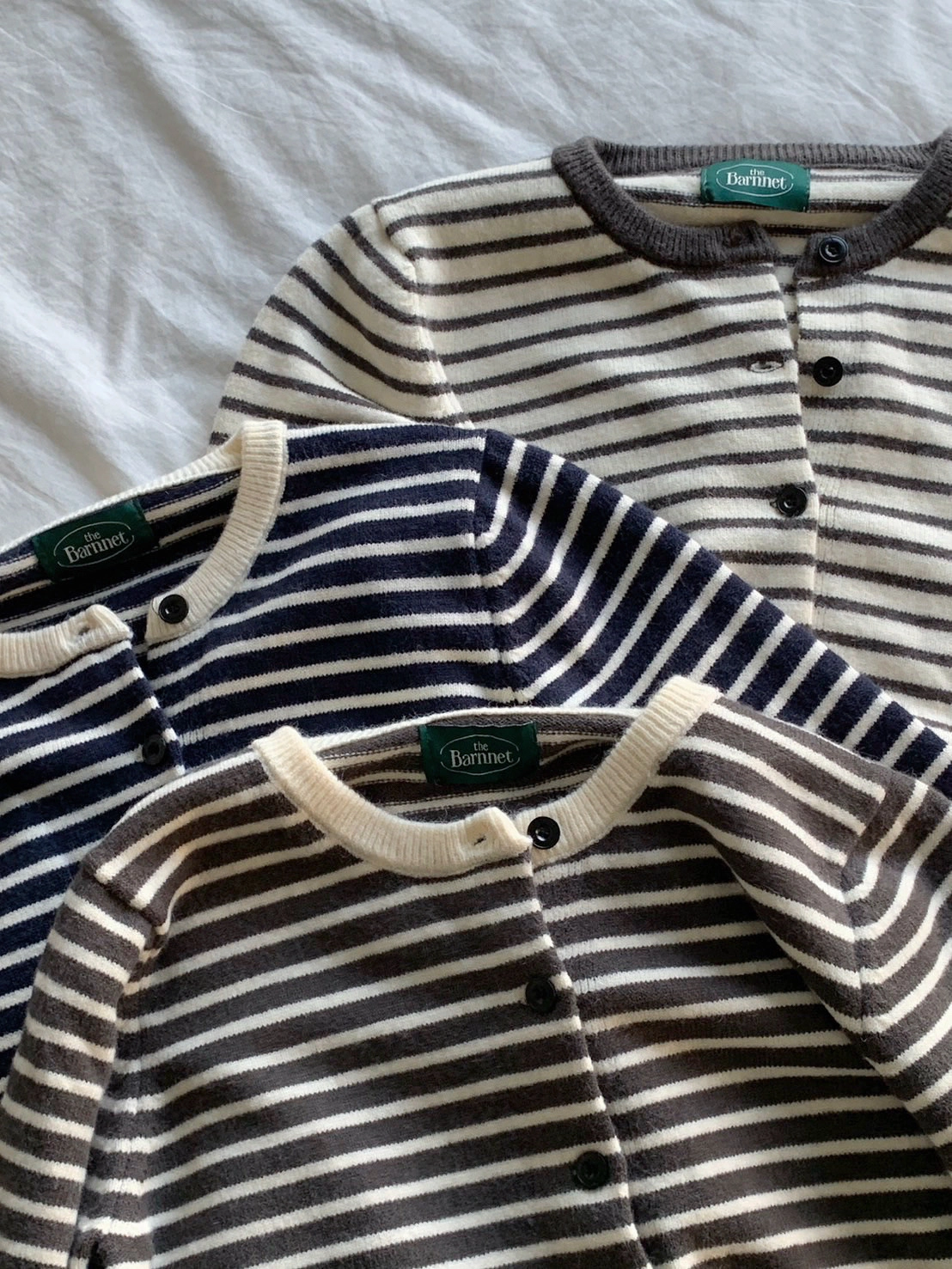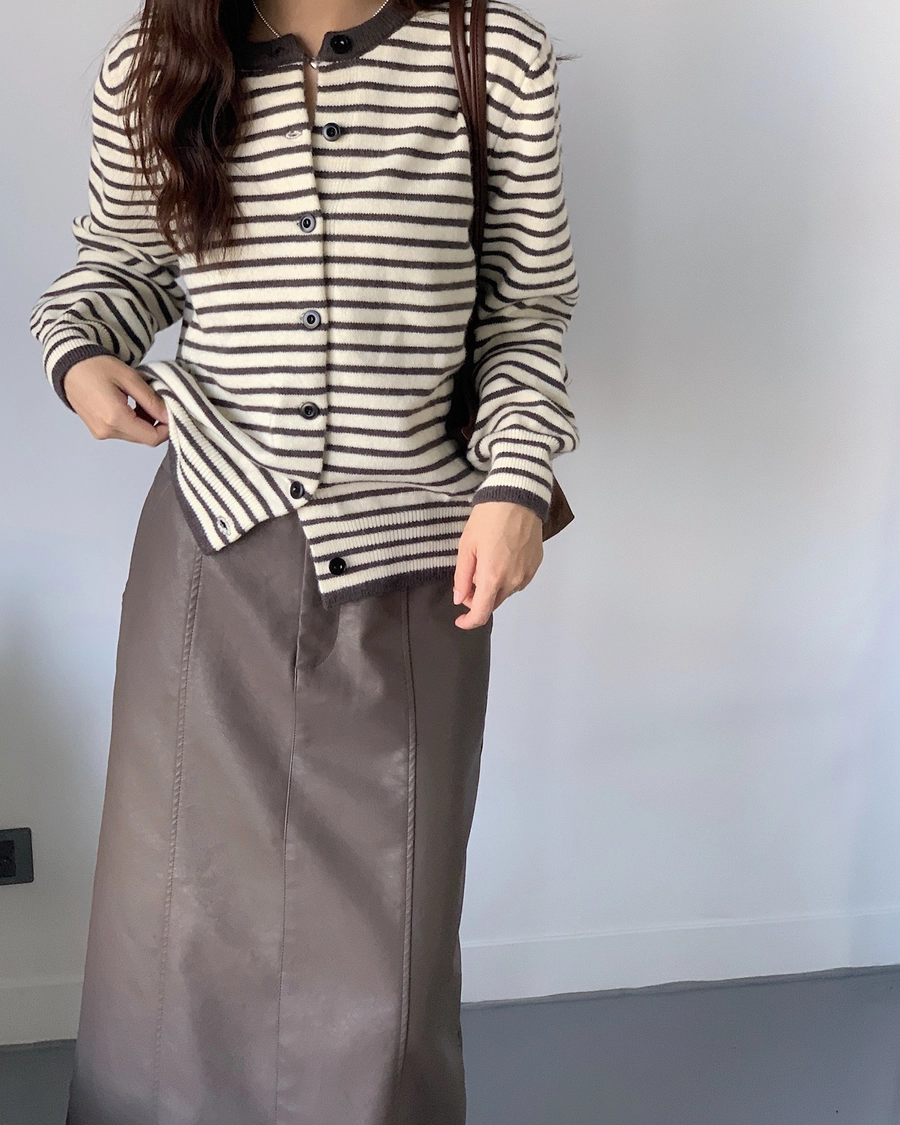 預購_橫條紋滾邊排釦針織衫