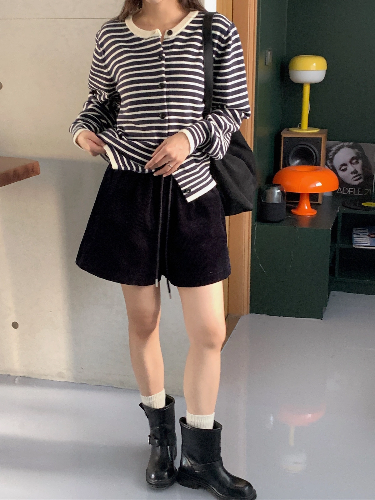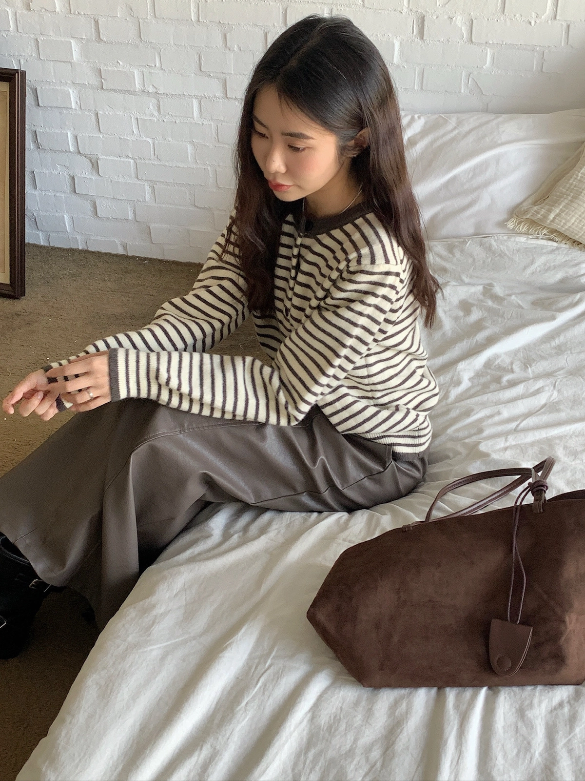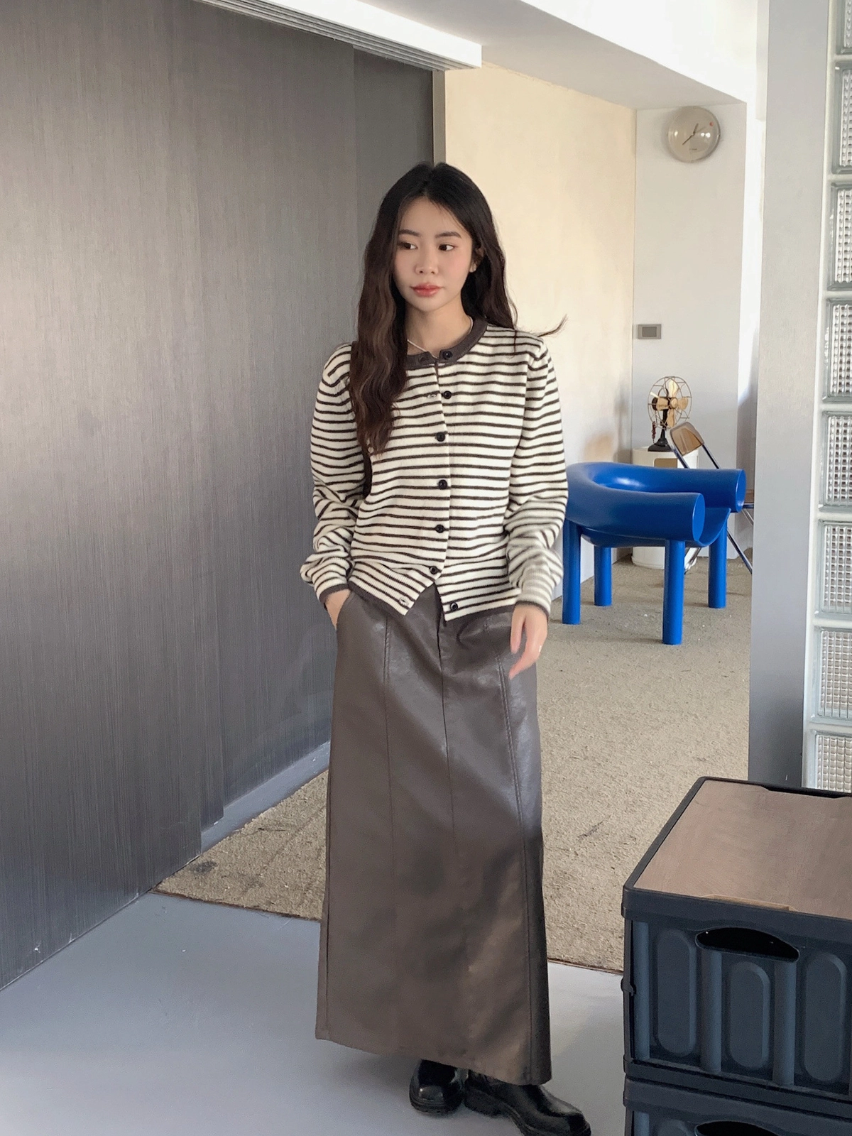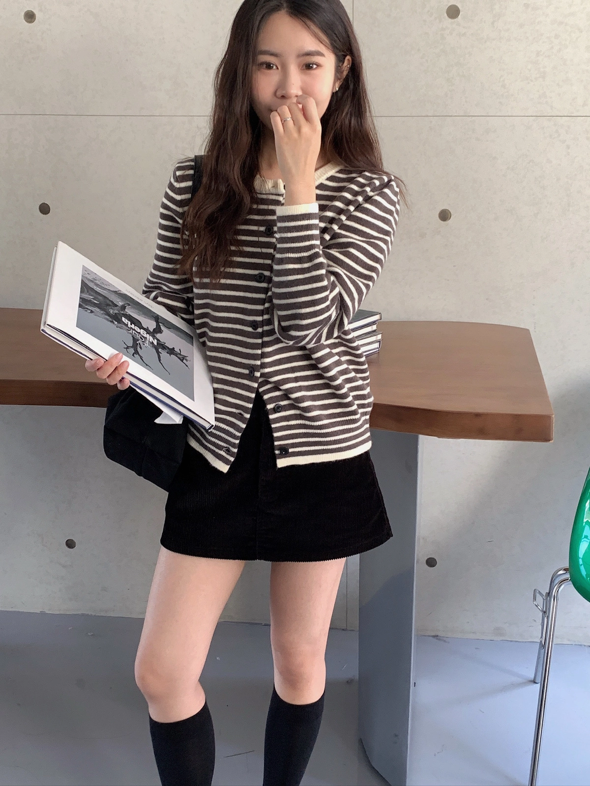 預購_橫條紋滾邊排釦針織衫