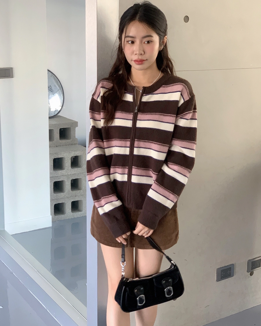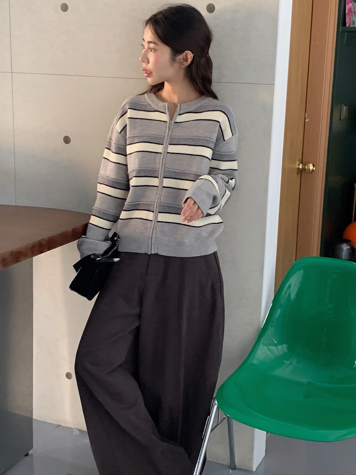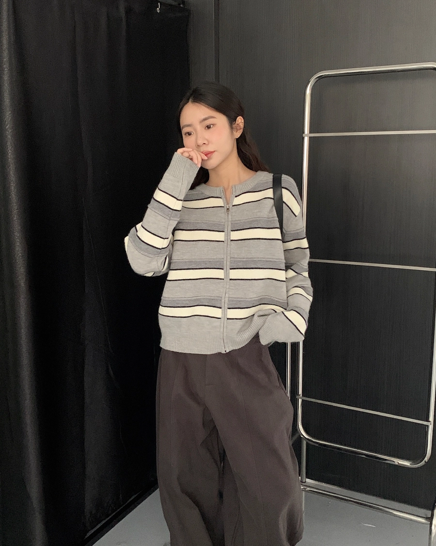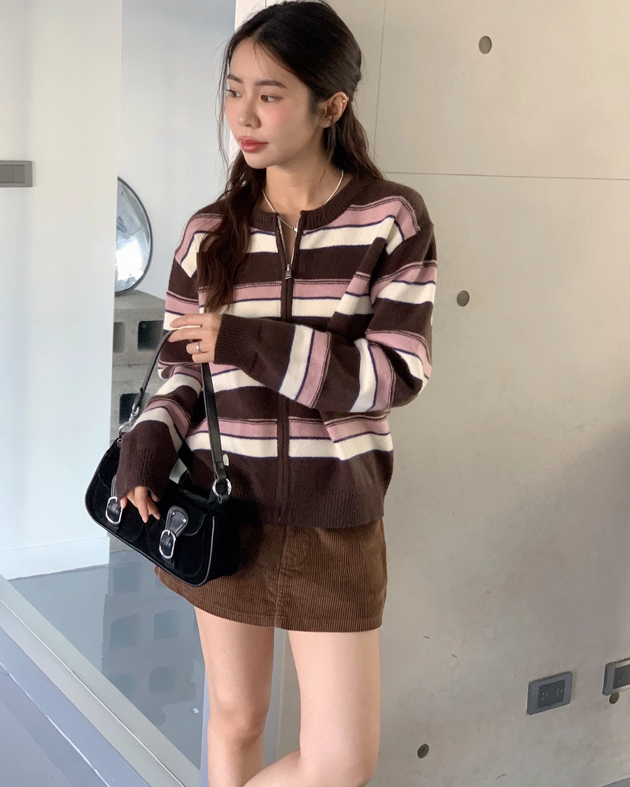 現貨+預購_立體橫條針織拉鍊外套
