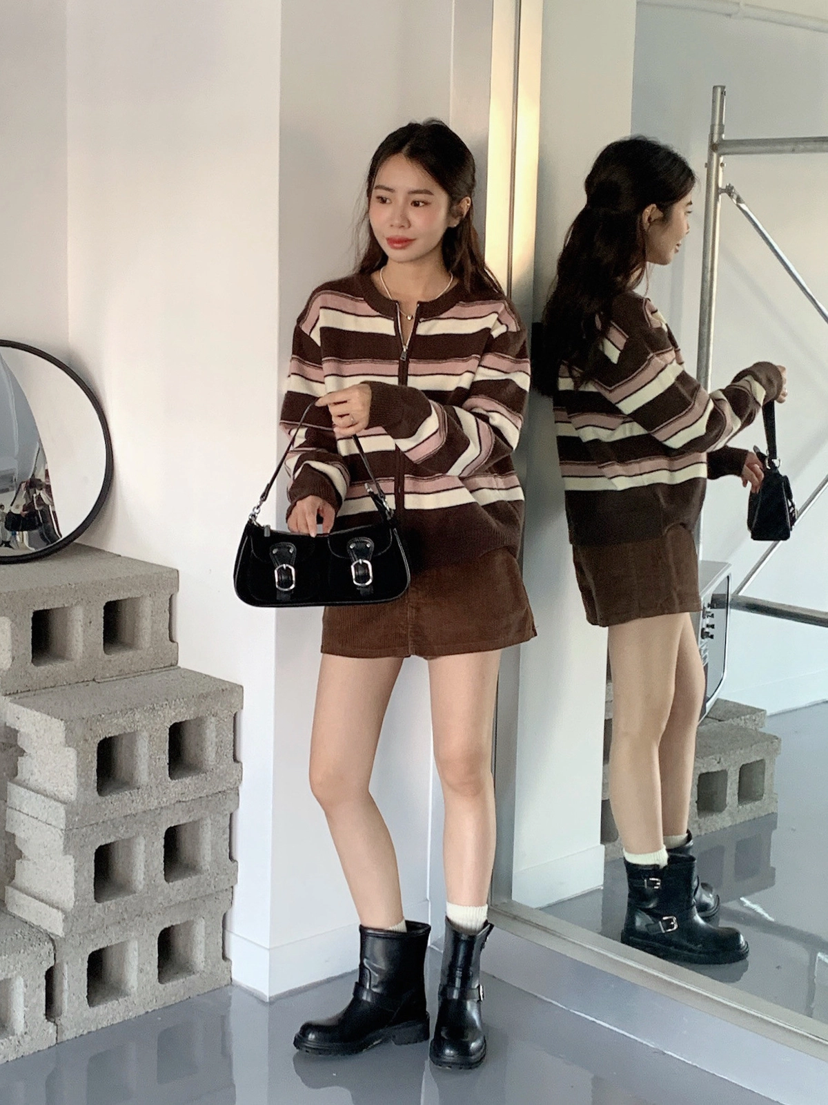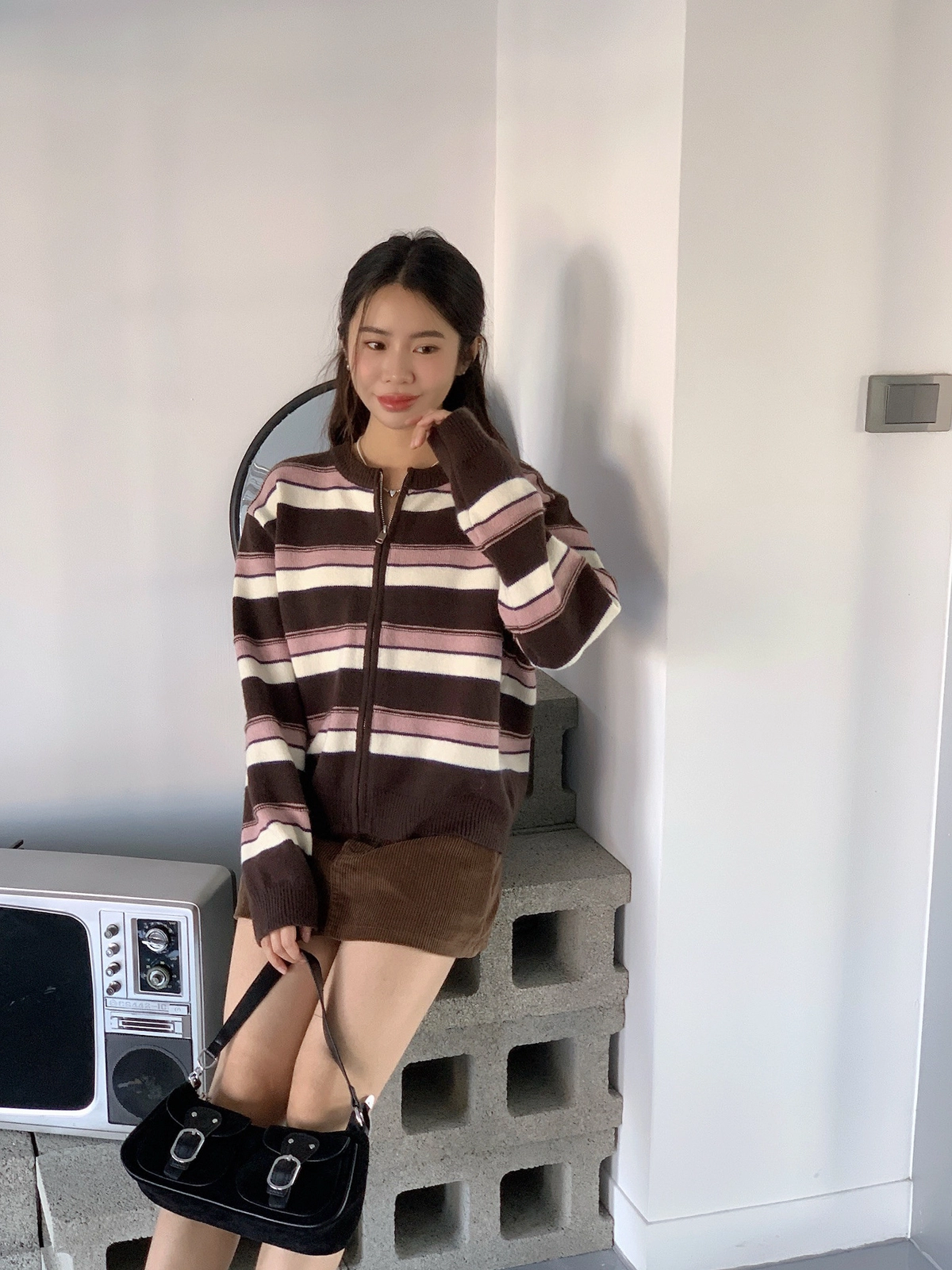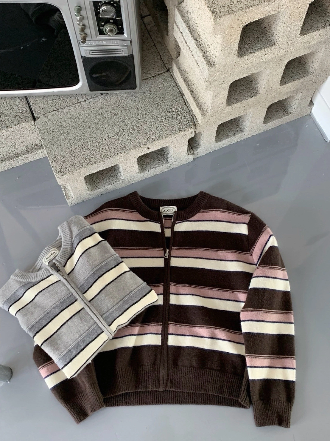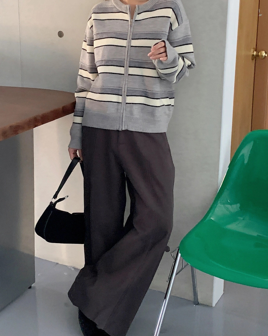 現貨+預購_立體橫條針織拉鍊外套