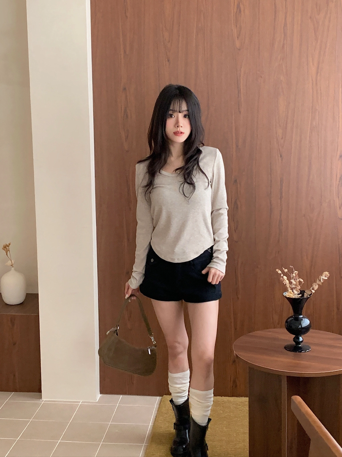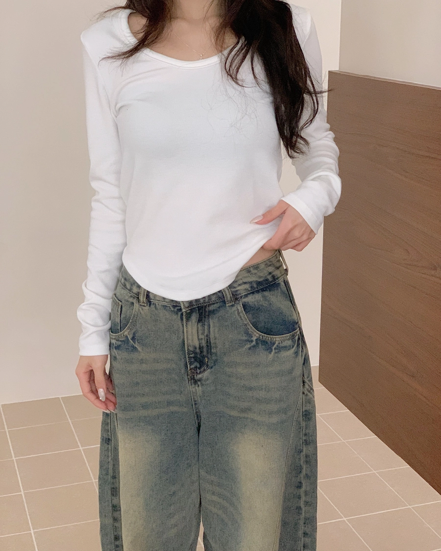 圓領坑條上衣