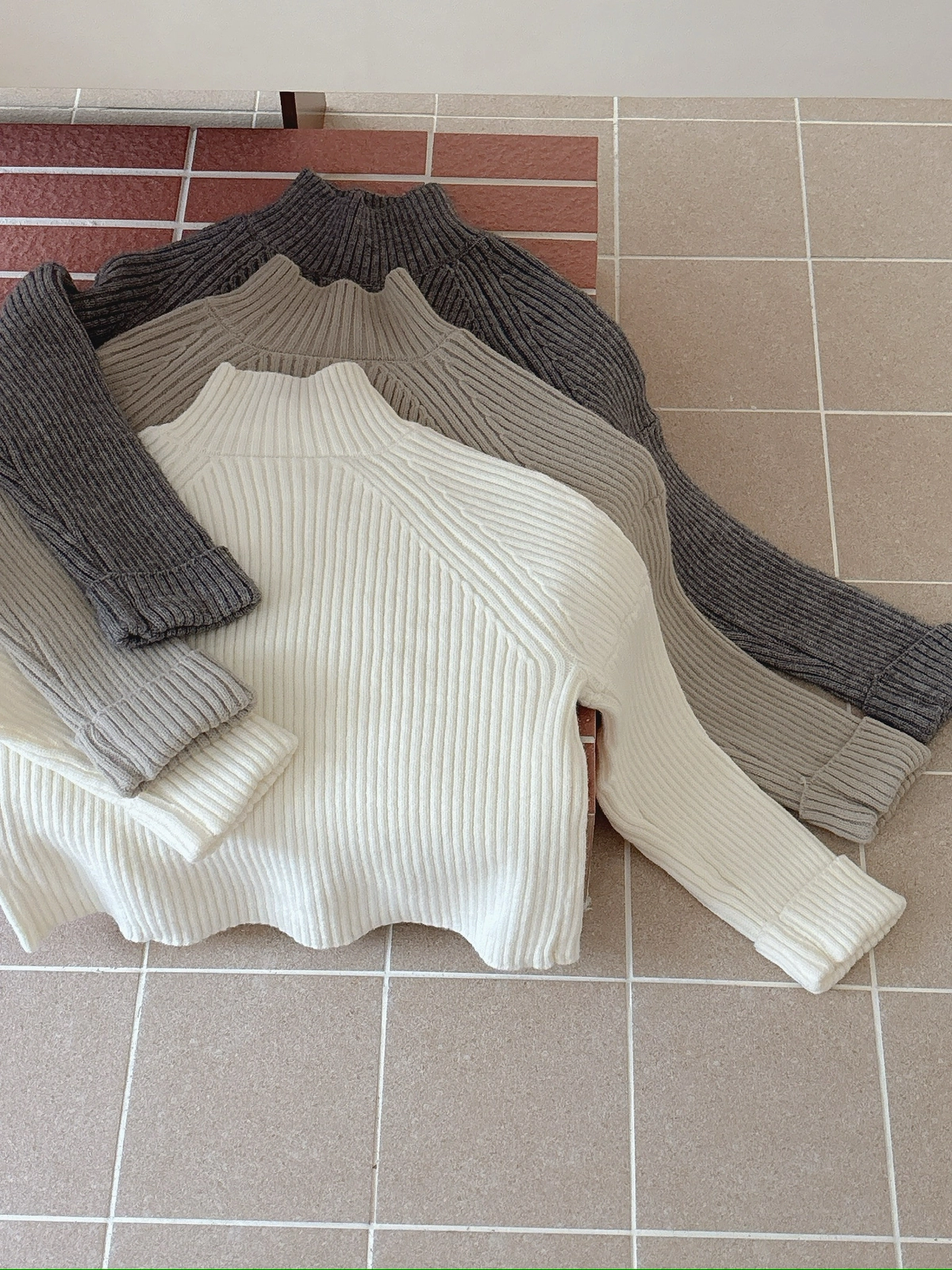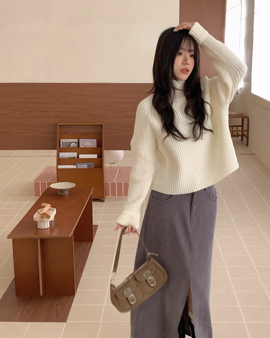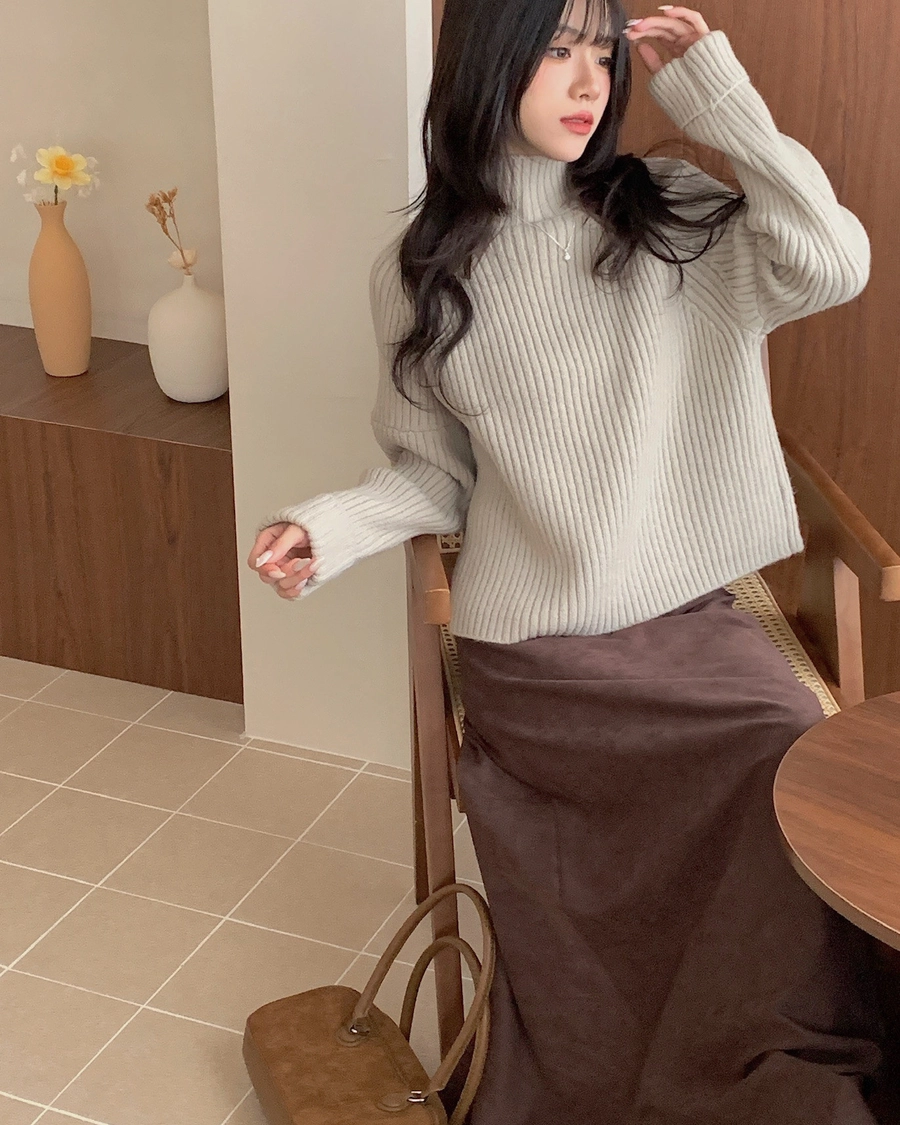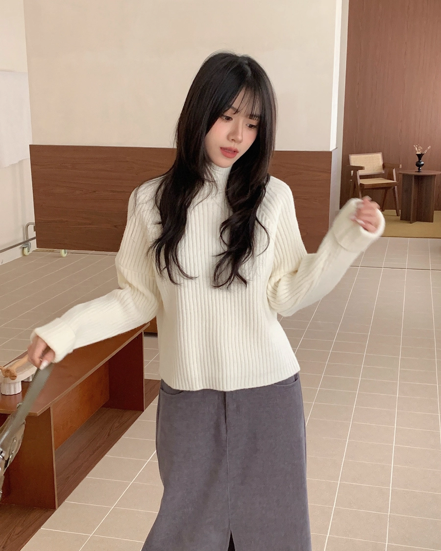 坑紋立領針織毛衣