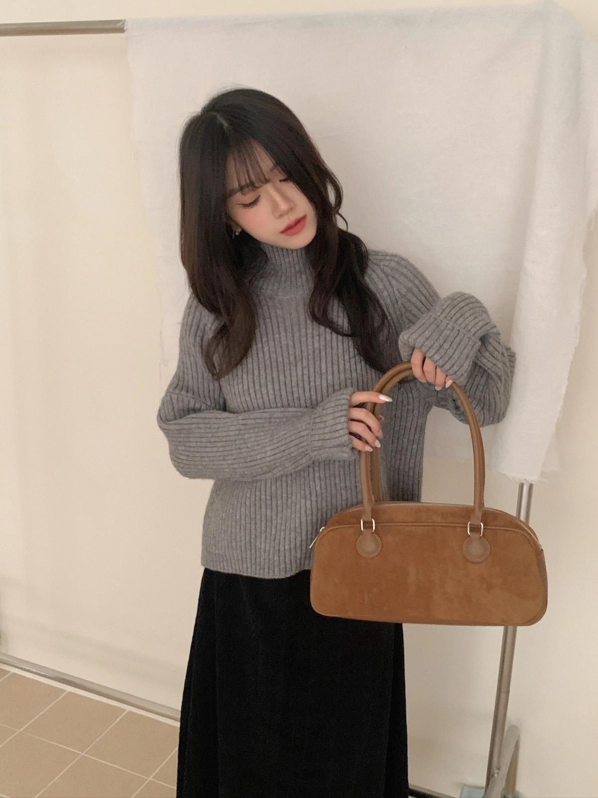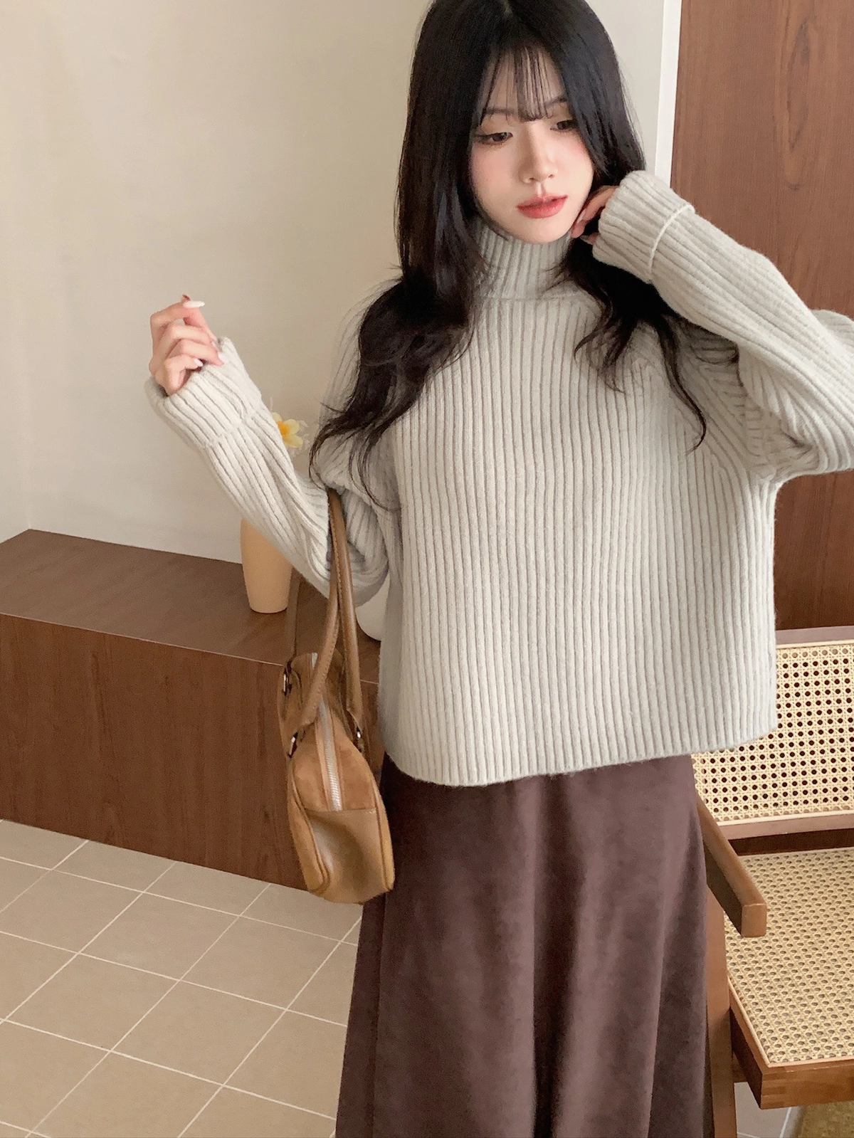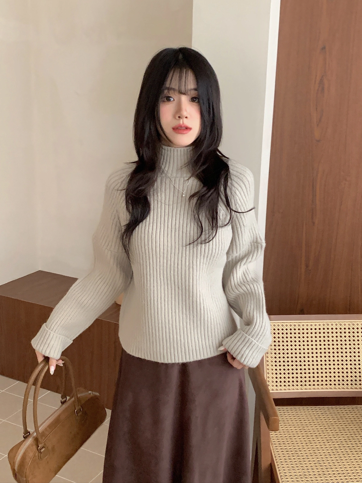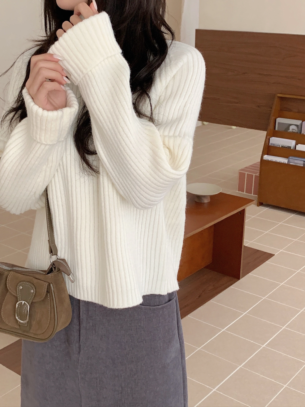 坑紋立領針織毛衣