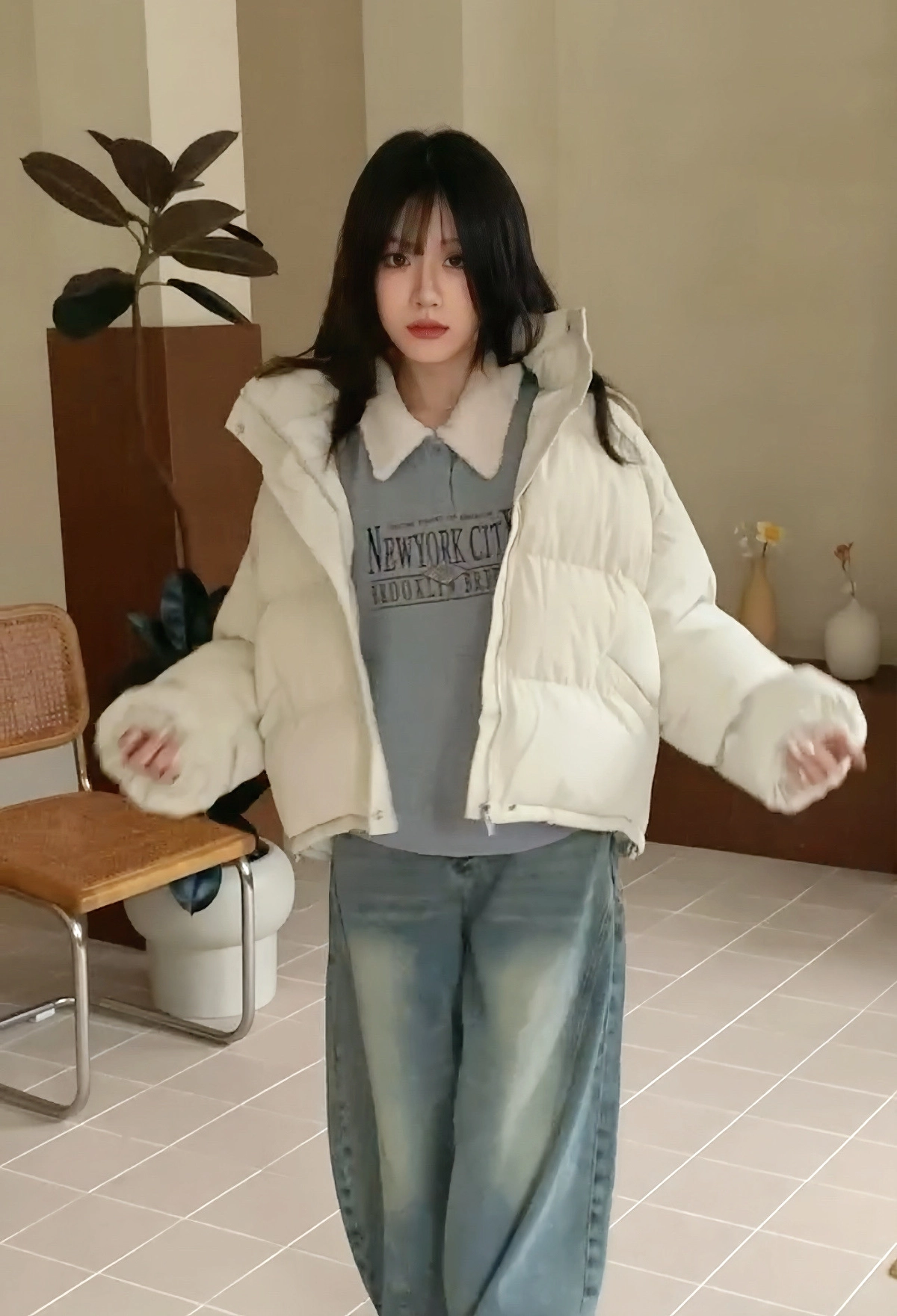 捲捲毛拼接上衣