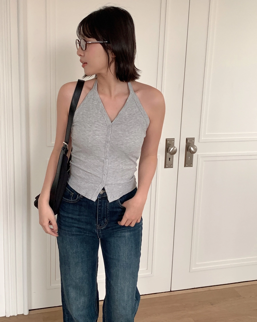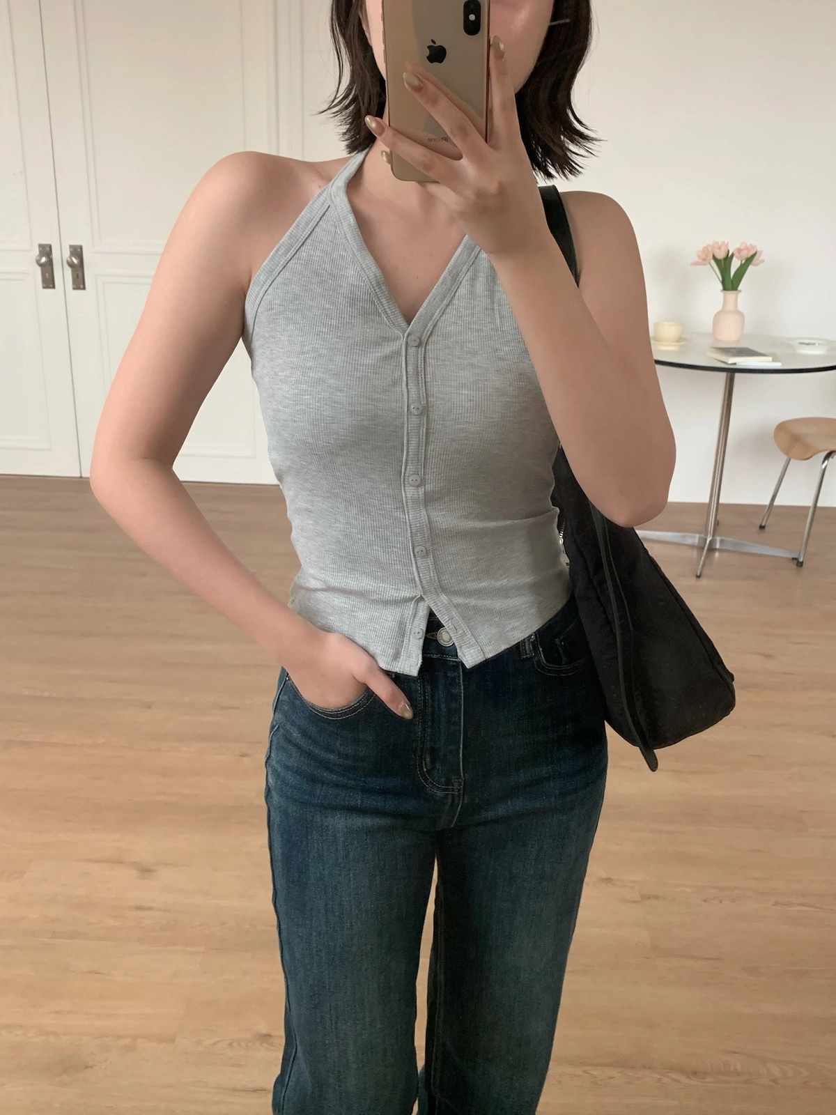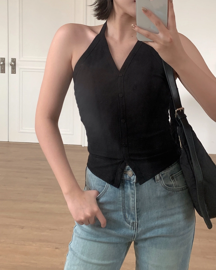 特價_人手一件❤️🔥顯瘦排釦掛脖背心(2763)
