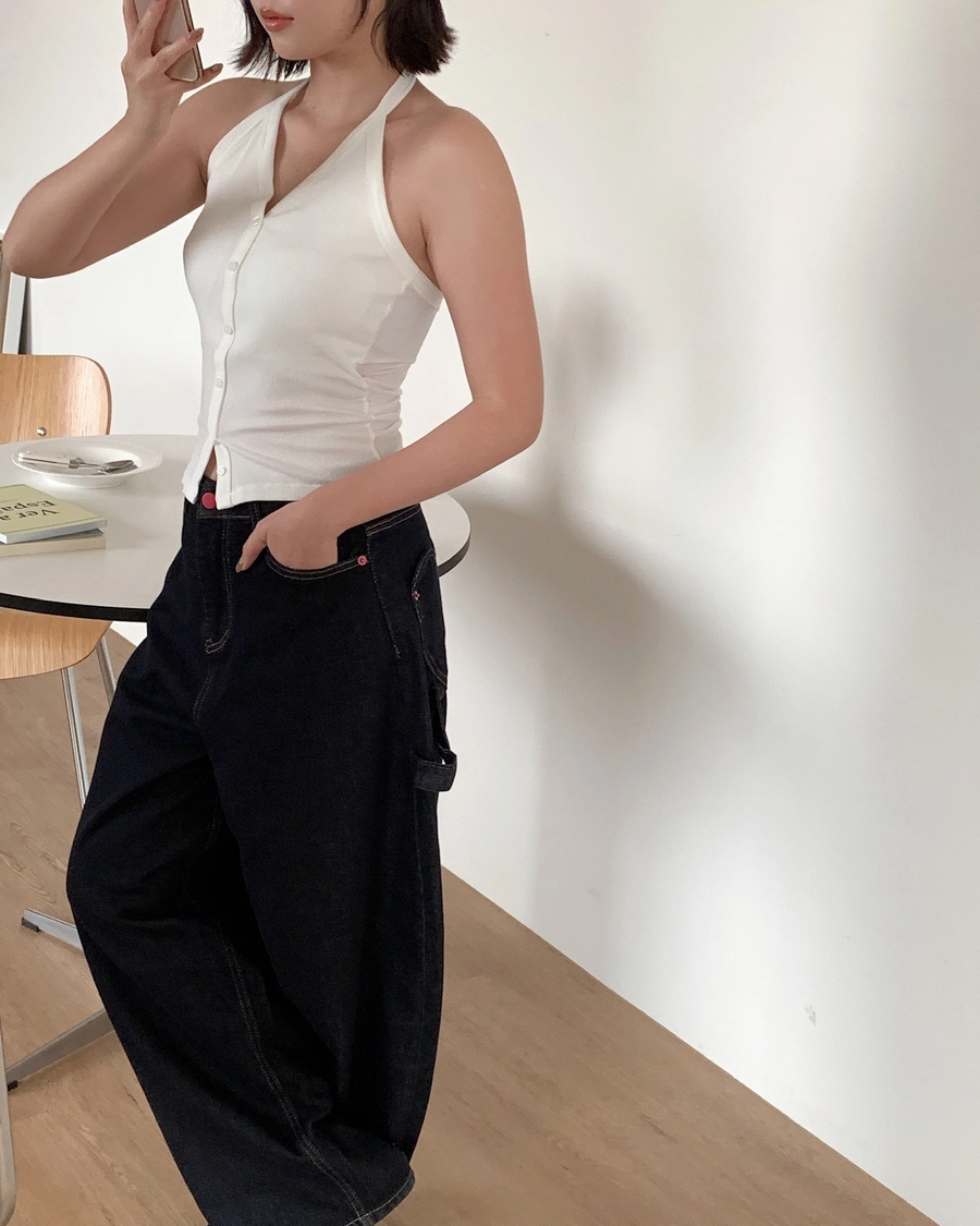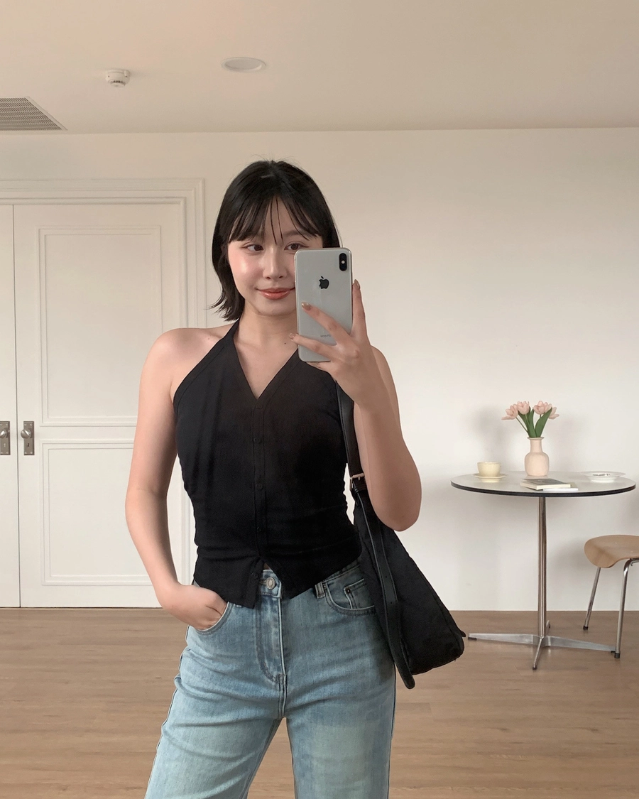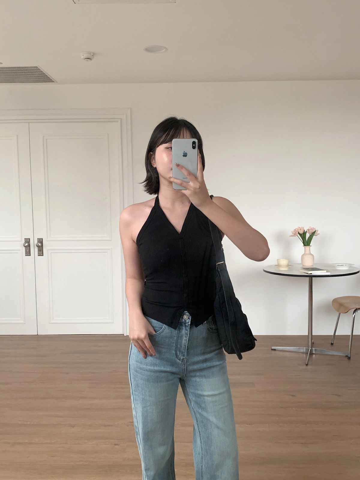 特價_人手一件❤️🔥顯瘦排釦掛脖背心(2763)