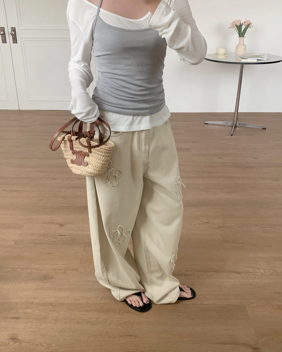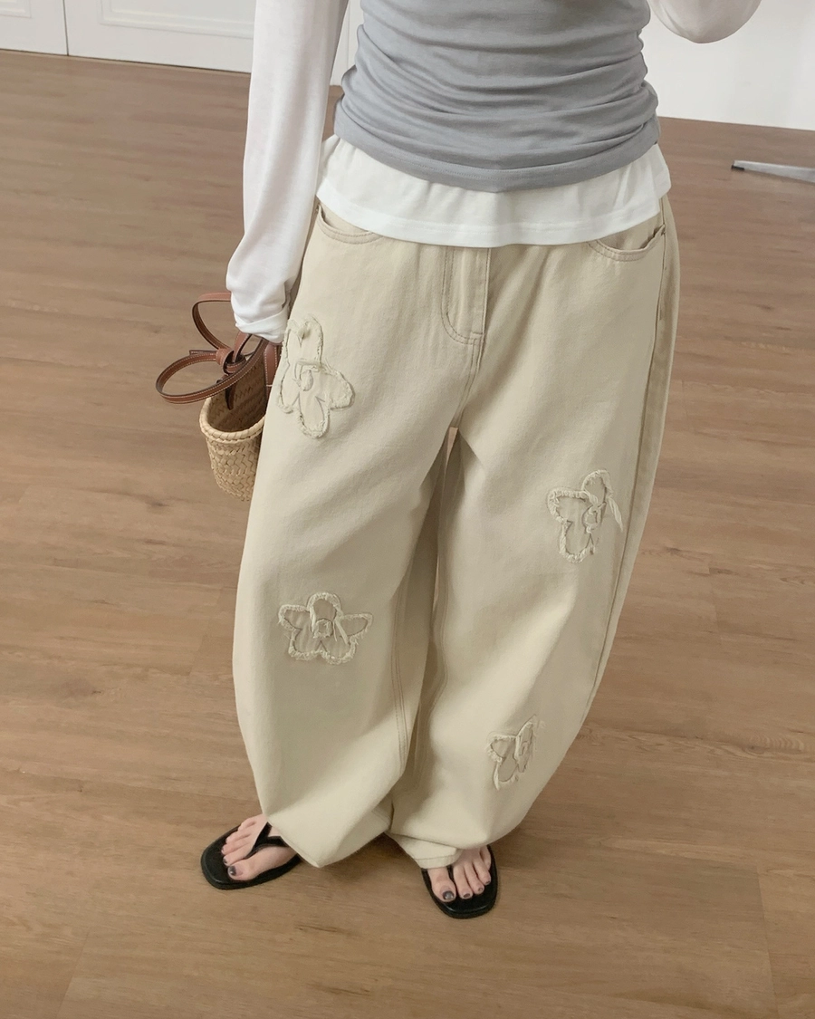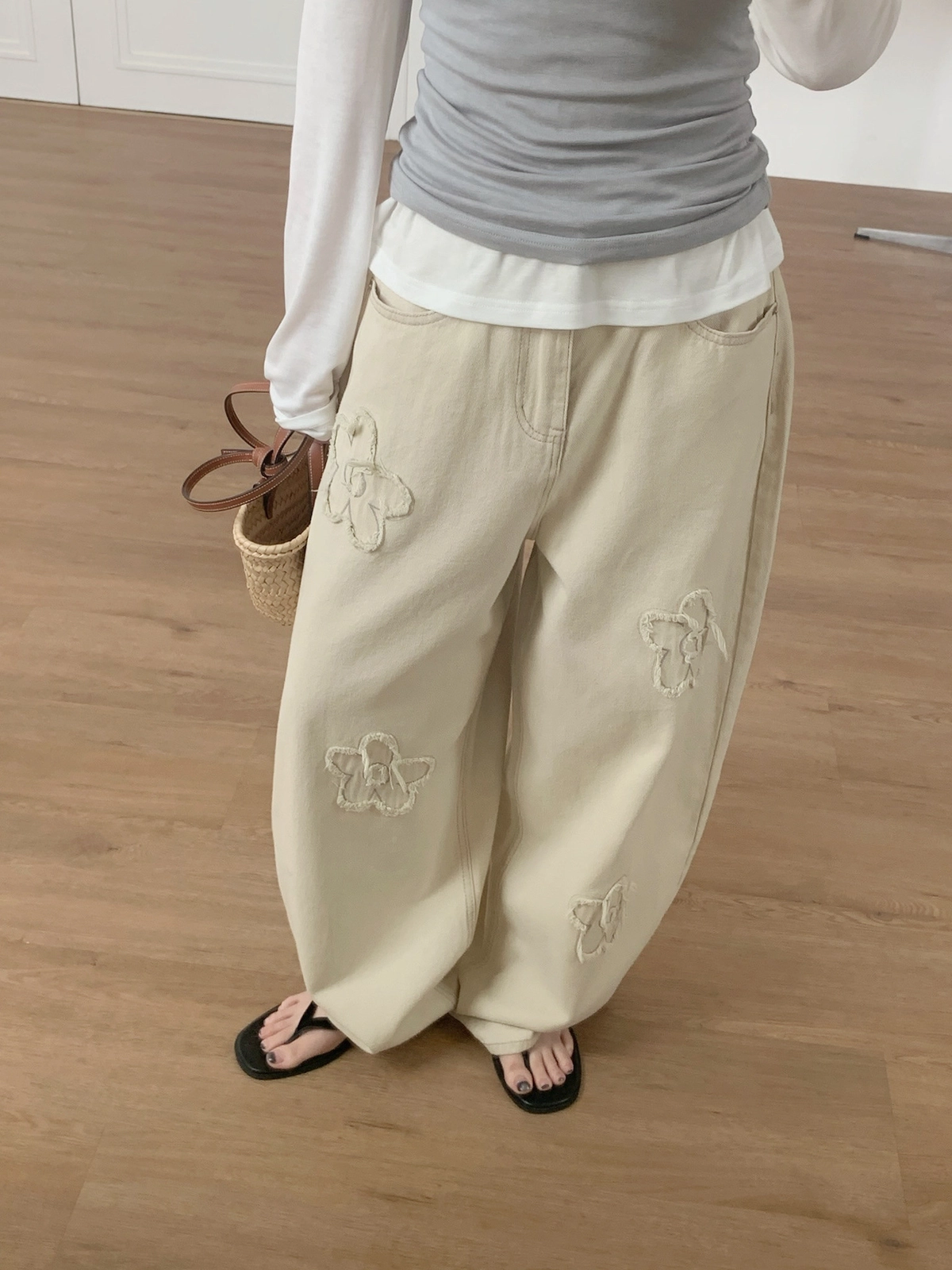 可愛爆擊!花花造型刷舊繭型褲(2770)