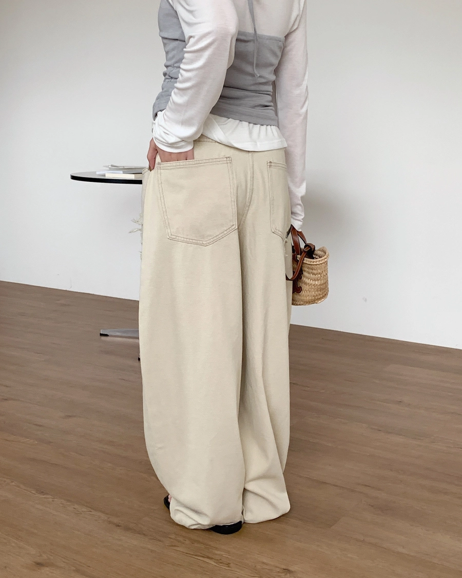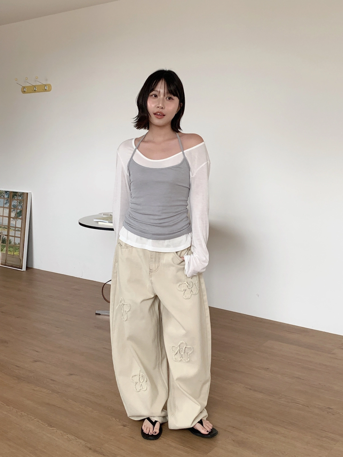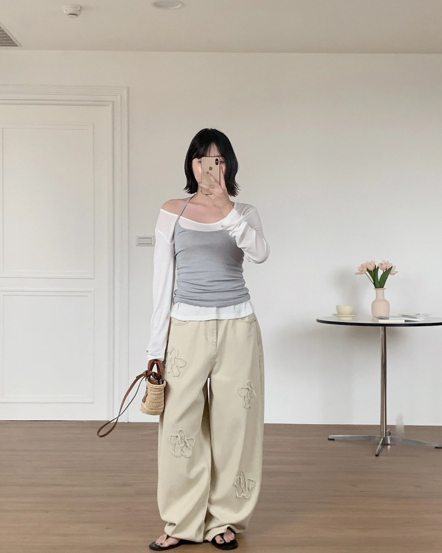 可愛爆擊!花花造型刷舊繭型褲(2770)