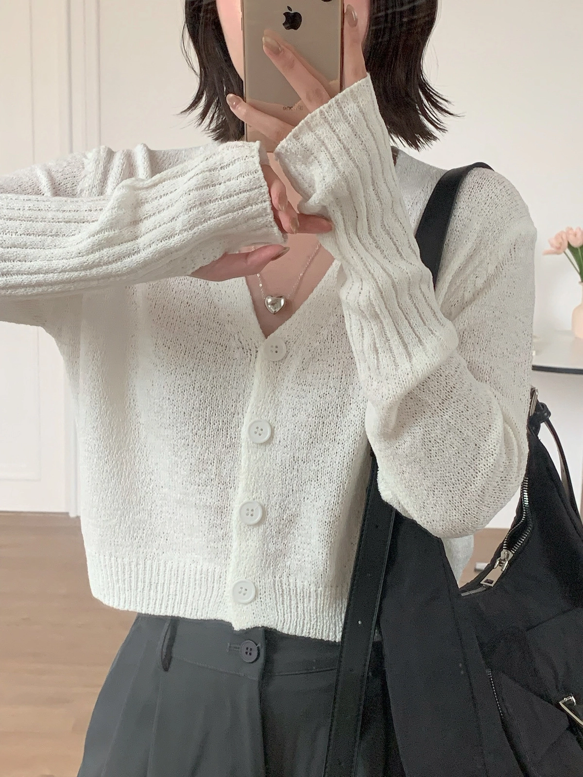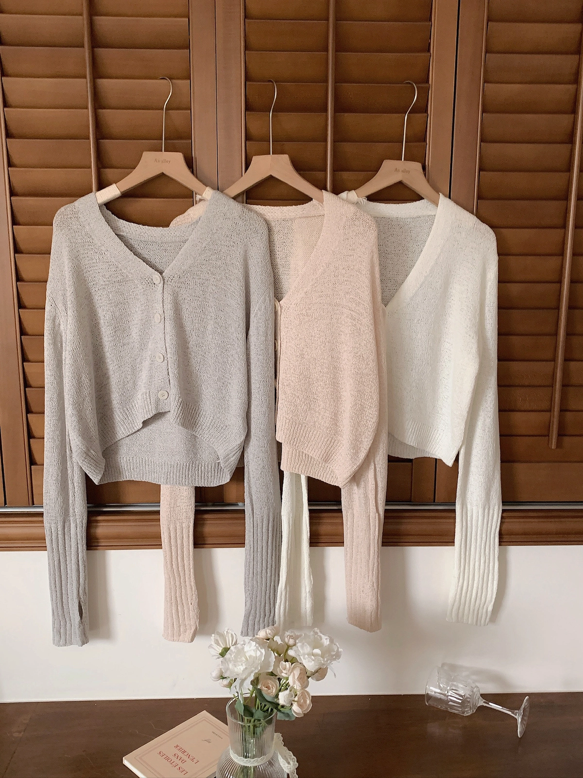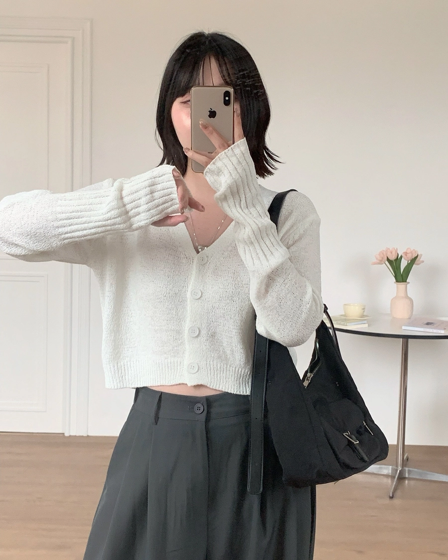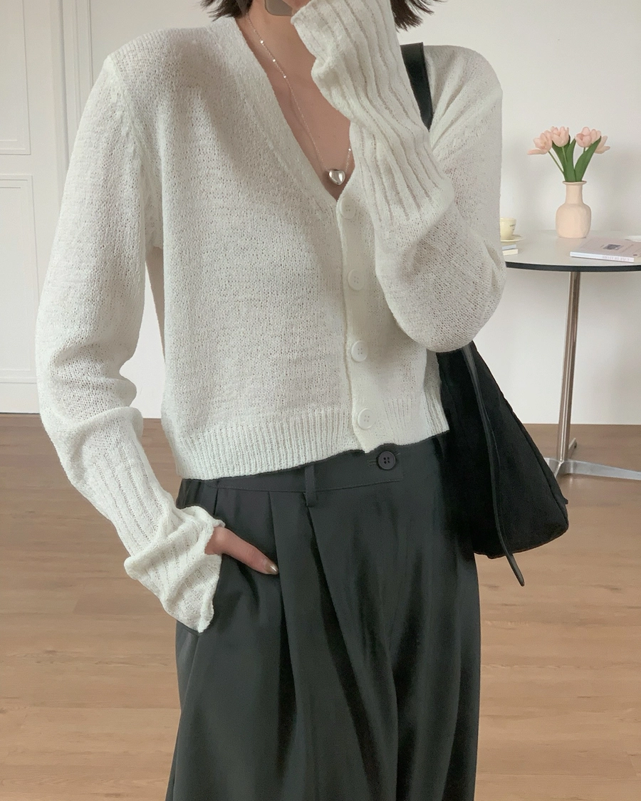 早春微涼必備!四釦露指袖針織上衣