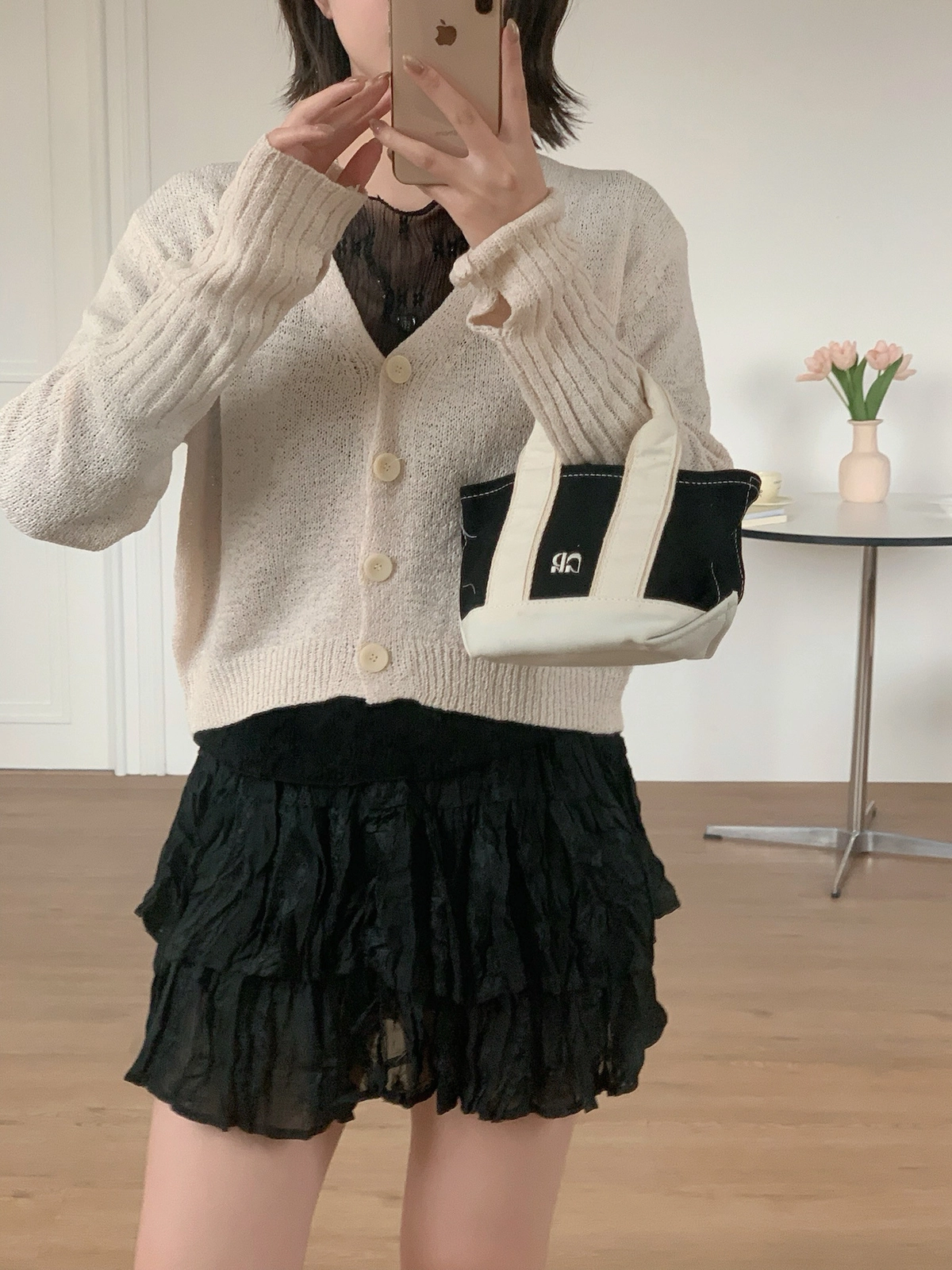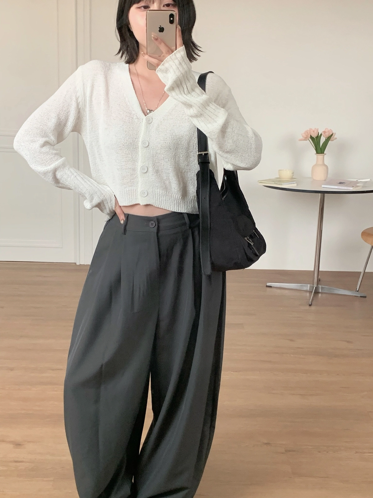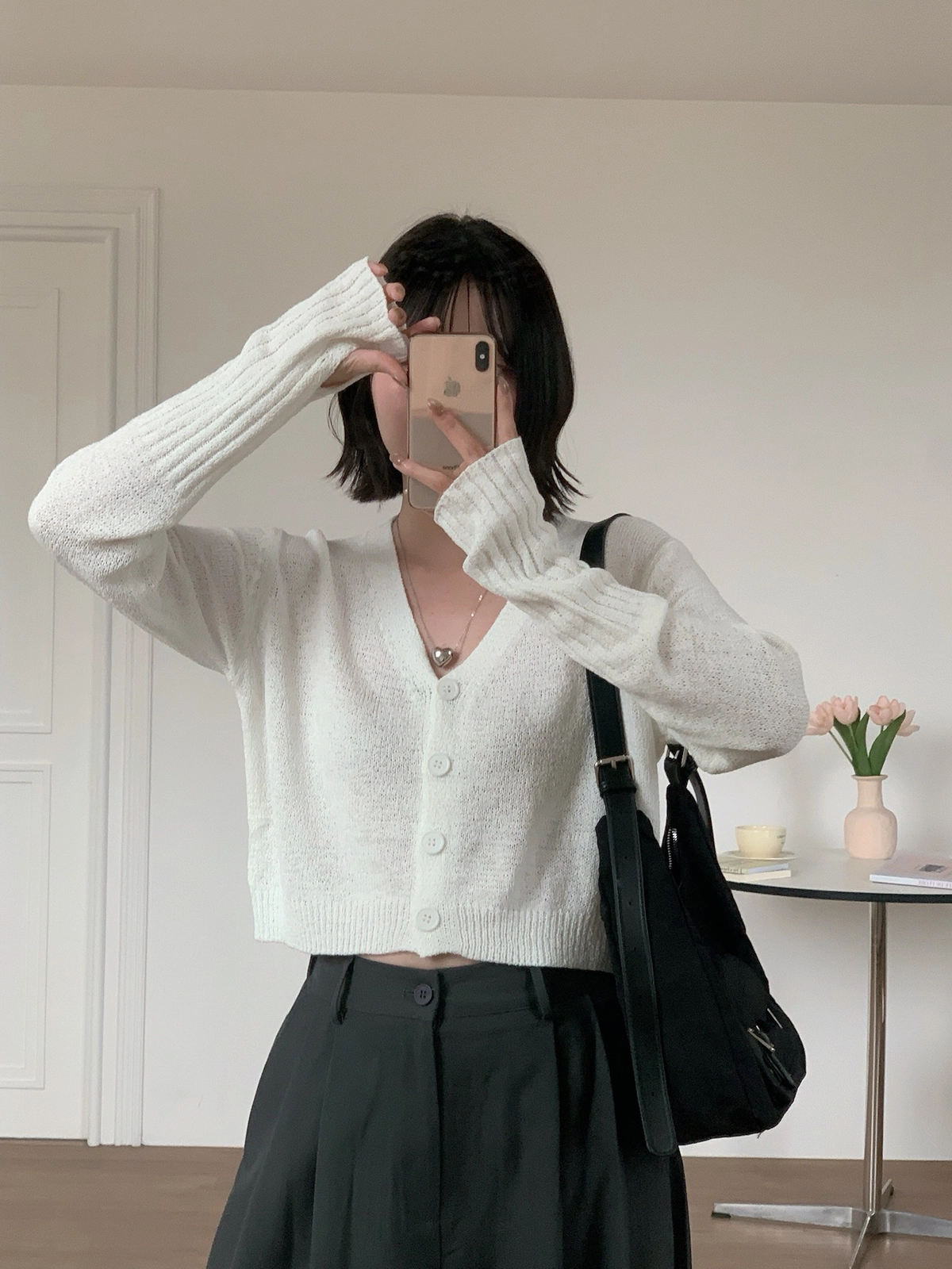 早春微涼必備!四釦露指袖針織上衣