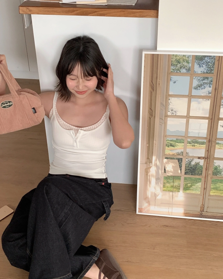 少女的春天🌸內格紋假兩件式背心(2784)