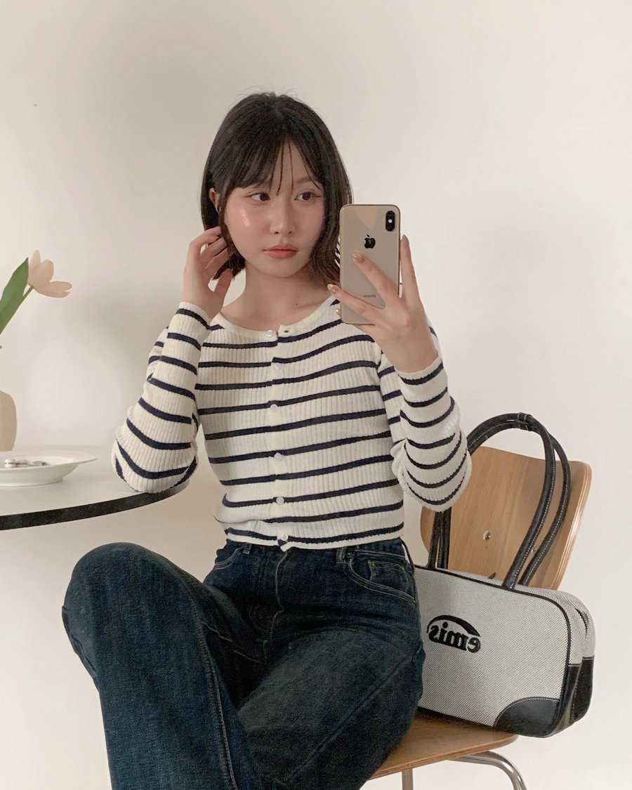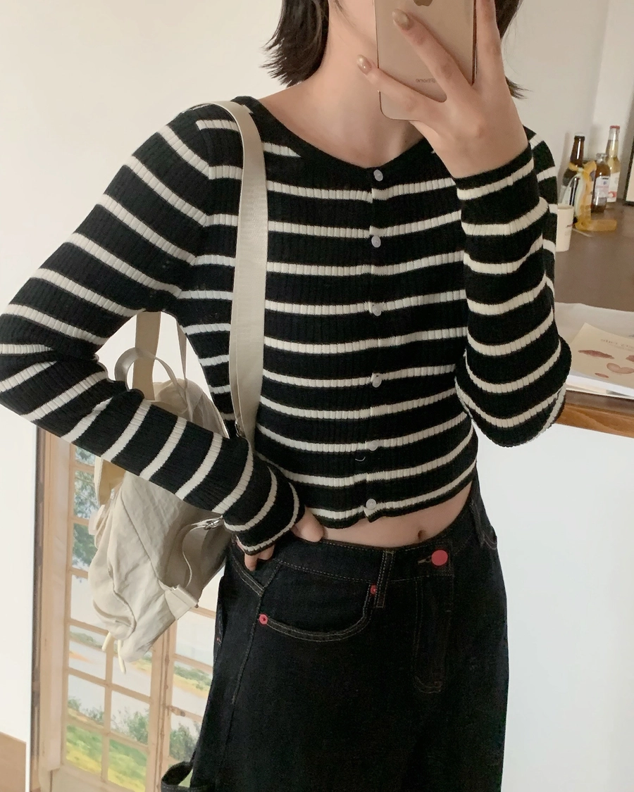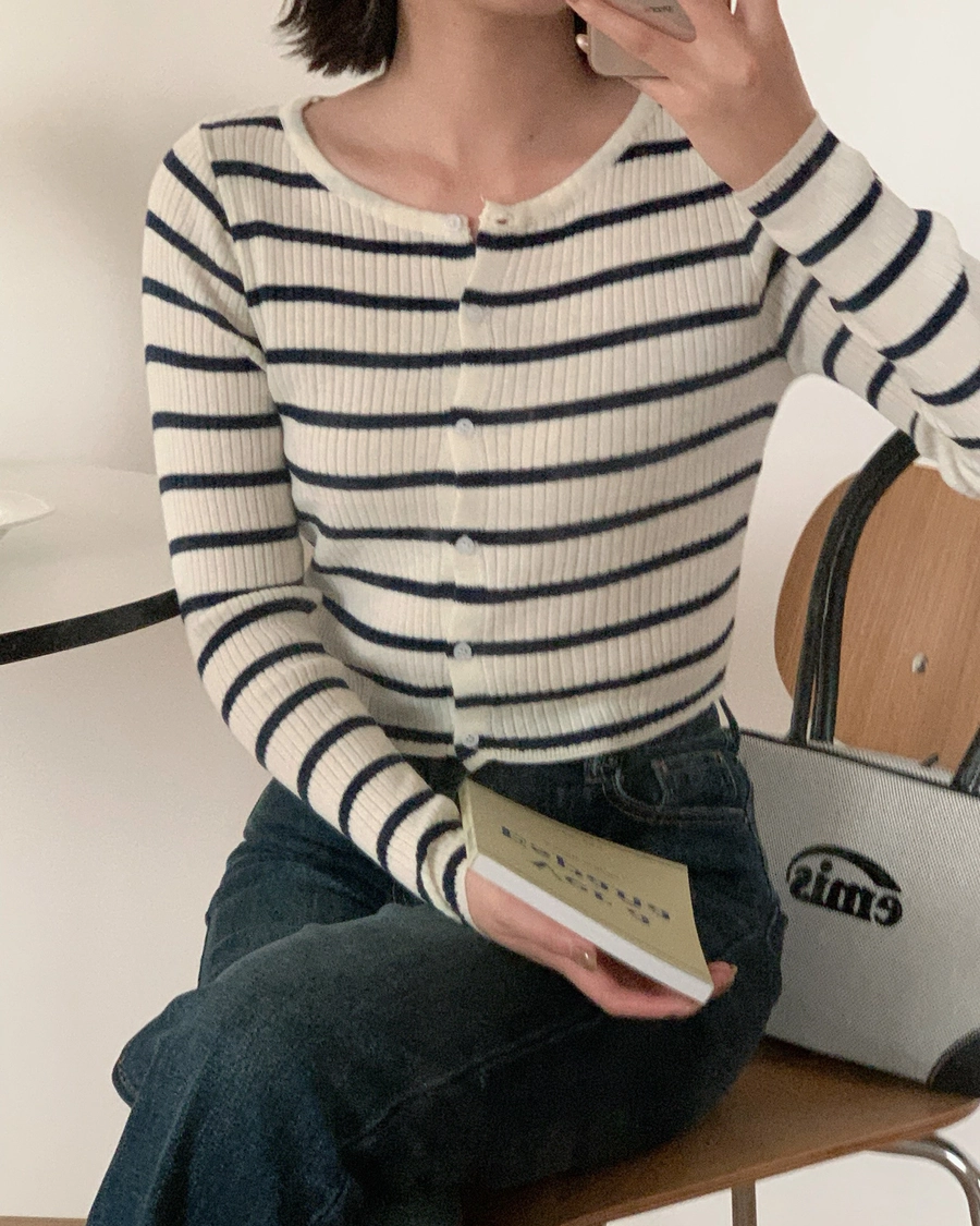 特價_修身又百搭✨橫條排釦上衣(2787)
