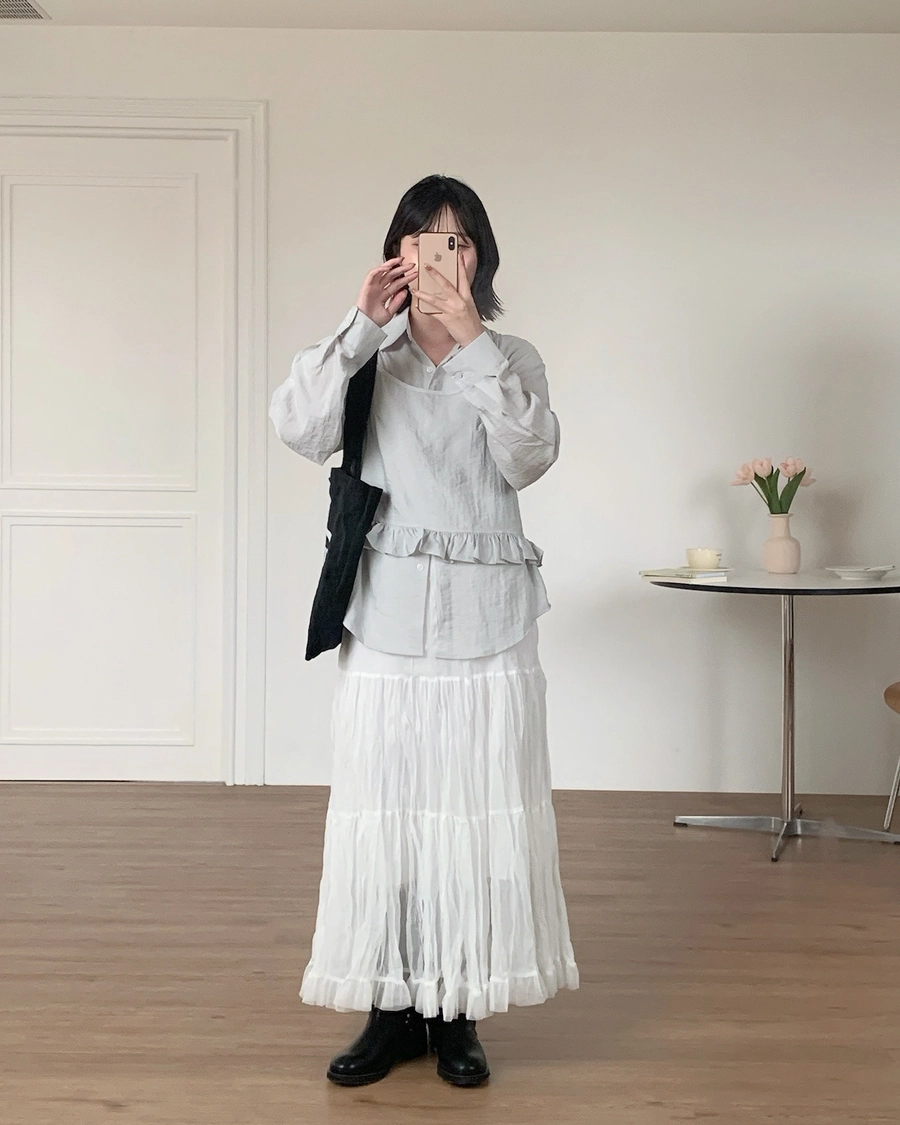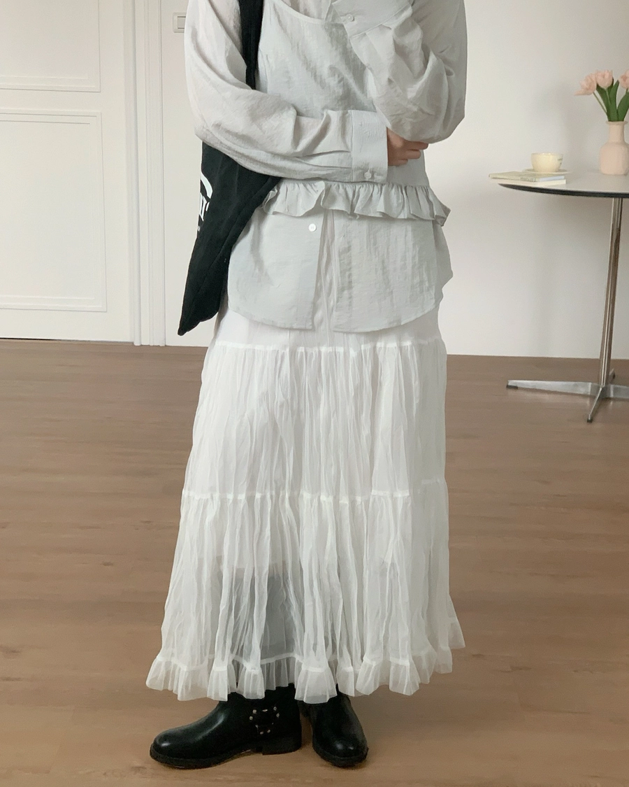 公主的抓皺網紗長裙(2805)