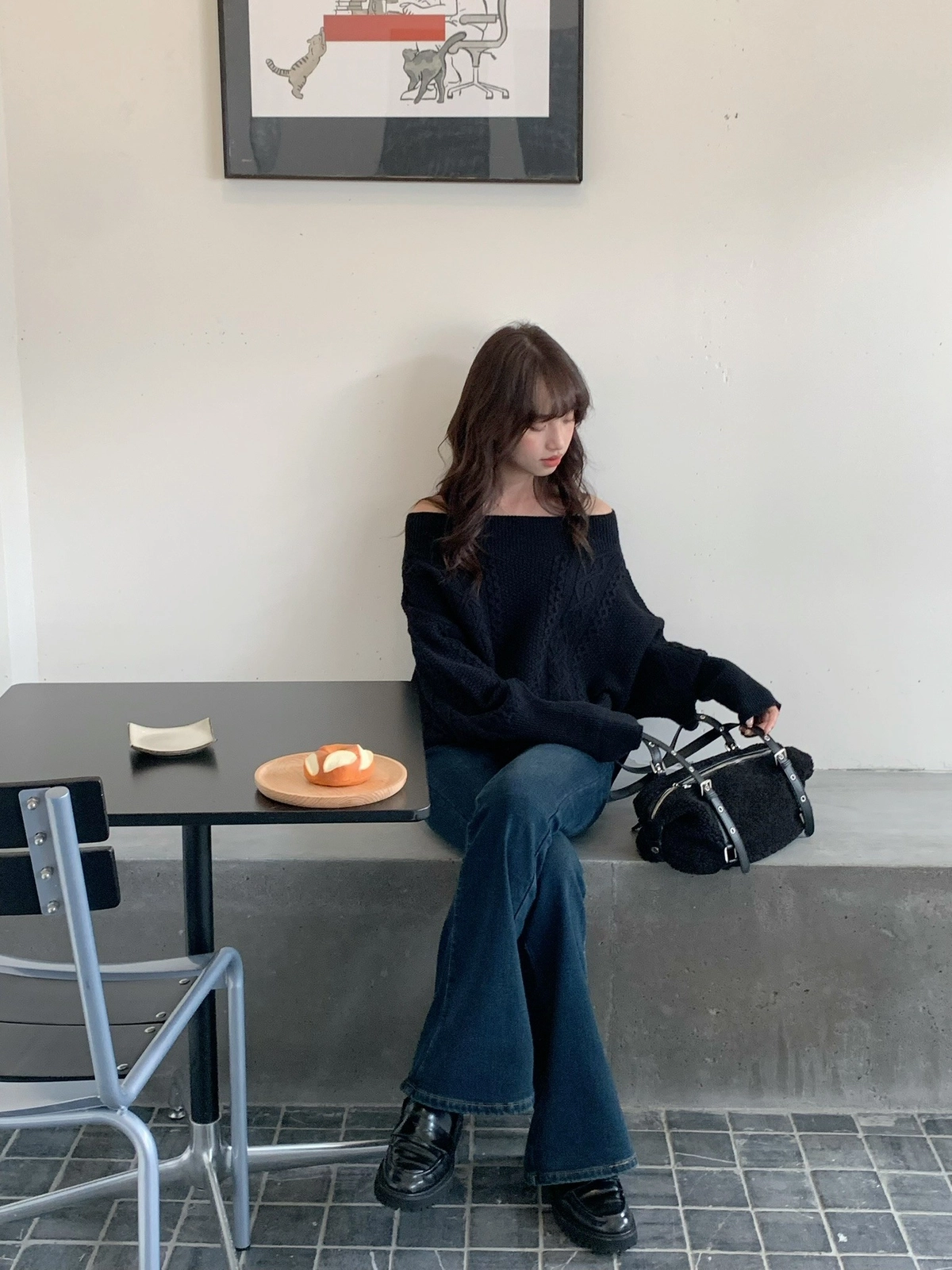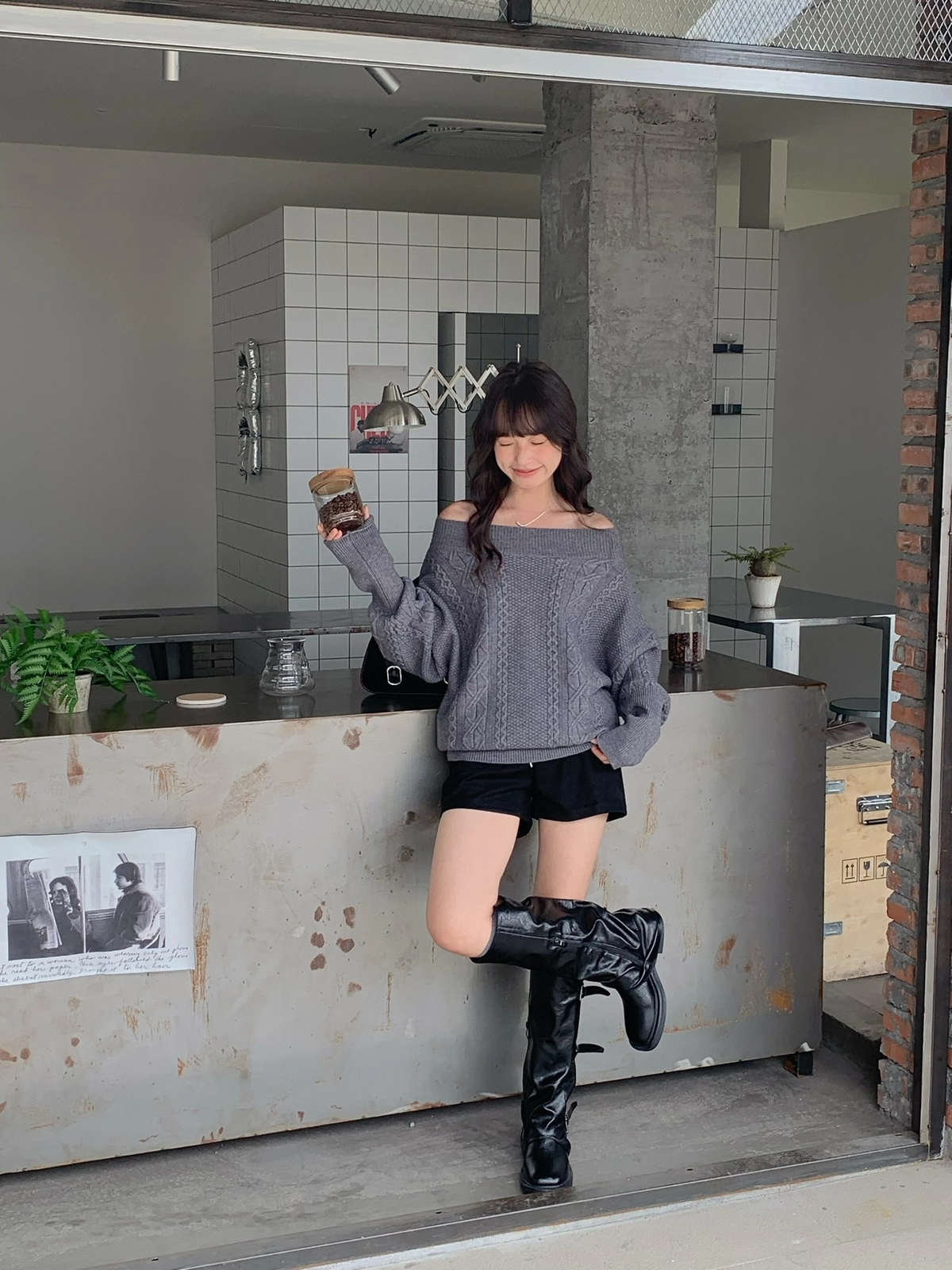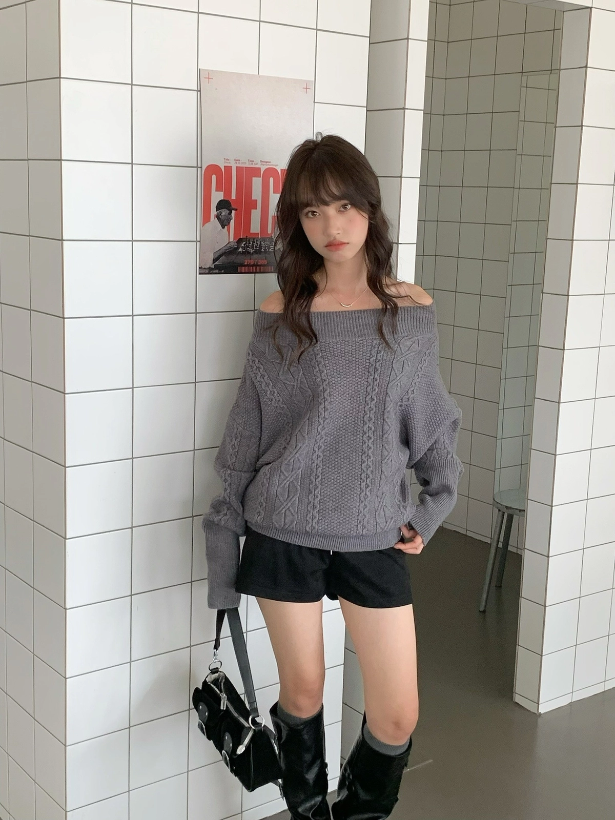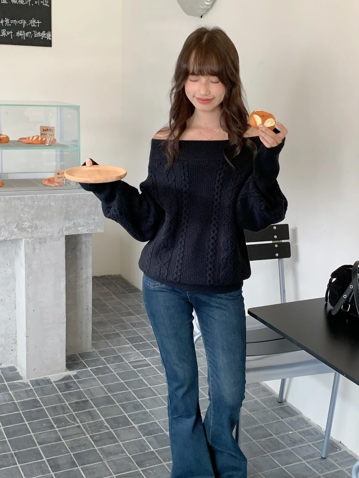 預購_特價_麻花針織一字領上衣