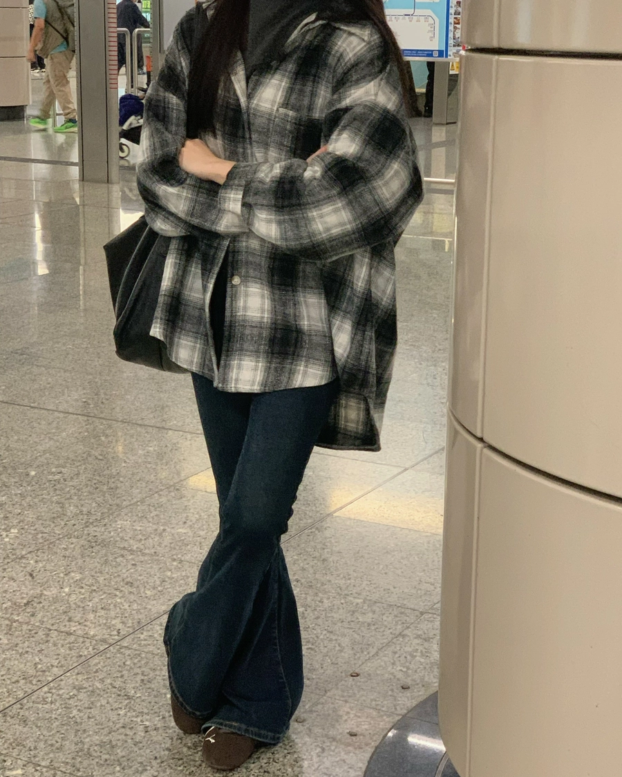 預購_特價_毛呢格子襯衫
